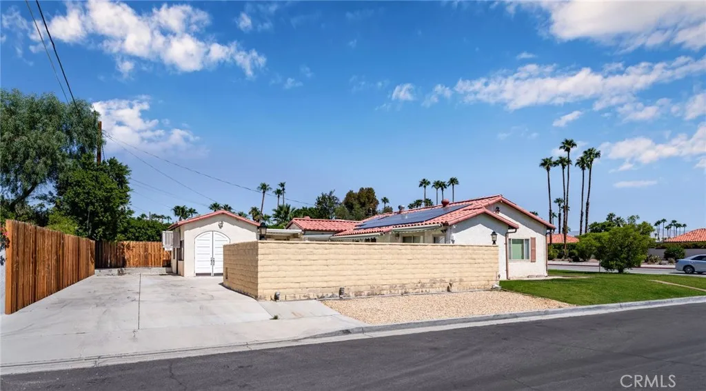 Timeless Spanish cottage in one of the BEST NEIGHBORHOODS in Palm Springs - Movie Colony East! NO HOA & LOW TAXES. Sited on a spacious highly coveted corner lot ... this charmer not only provides majestic views of our towering mountains as your personal backdrop but also abundant parking with easy navigation. A highly flexible exterior design affords for diverse landscape options - including a manicured front lawn, additional parking off N Sunrise, street parking off E Granvia Valmonte (easy to come & go) and a large driveway that can easily accommodate several vehicles or any RV/BOAT needs. An inviting interior space is highlighted by an updated gourmet kitchen with custom cabinetry, stone counters and stainless steel appliances. The kitchen is not only spacious but perfect for entertaining - with direct access to the backyard/dining room and a full size washer & dryer enclosure for easy washing after pool use. Archways provide seamless transitions throughout the home which is anchored by cohesive flooring - with both tile and hardwood providing easy maintenance. A contemporary fireplace accents the main living space, DUAL PANE windows help ensure energy efficiency + reduce exterior noise levels and SOLAR helps manage utility costs! The main hall bathroom has been expertly updated with a modern design and both bedrooms are well sized. When you have a POOL HOME ... you want to be able to maximize pool time for both you and your guests - we have you covered! The current exterior flex space has the ability to function as a garage, workshop, outdoor kitchen or would make a gre