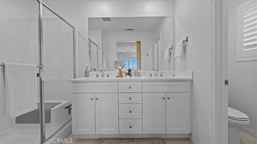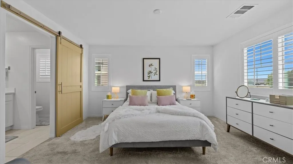 Welcome to this beautifully upgraded home in the highly desirable Heritage Lake community. Built in 2021, this 3 bedroom, 2.5 bath residence offers a bright, open-concept floor plan designed for modern living. The main level features a spacious living and dining area that flows into a contemporary kitchen with stainless steel appliances, custom cabinetry, and a center island perfect for gatherings and daily life. Upstairs, the primary suite offers a private retreat with a large walk-in closet, dual-sink vanity, and abundant natural light. This home has been meticulously maintained with thoughtful updates throughout, ensuring a true move-in ready experience Step outside and enjoy a clean, peaceful yard designed for low-maintenance living. Front Porch, take in beautiful mountain views, creating a serene backdrop for relaxation. Located in the welcoming area residents enjoy resort-style amenities including a private lake, clubhouse, walking trails, playgrounds, and parks. With a two-car garage, energy-efficient features, and a prime location near schools, shopping, and freeways, this home is the perfect blend of comfort and convenience. Low HOA!!!! Location Highlights : Close to shopping,dining and close freeways. Close to Perris Union HS. Quiet,well kept neighborhood. Do not miss the oppourtunity to make this your new home. Solar panels, lease must be taken over.
