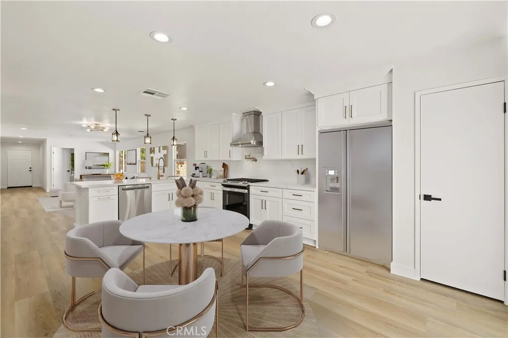 Kitchens are where Memories are Made, Make Yours Beautiful!! Discover your dream home in this completely renovated single-story gem nestled on a sprawling quarter-acre lot! This stunning four-bedroom, two-bathroom residence showcases 1,720 square feet of thoughtfully designed living space that's perfect for creating lasting memories. The heart of this home is the spectacular kitchen, where culinary dreams come to life. Feast your eyes on brand-new GE stainless steel appliances, including a powerful gas range with continuous edge-to-edge cooktop and spacious 5.3 cubic foot oven. The whisper-quiet dishwasher with Steam-Sani cycle makes cleanup a breeze, while the luxury ZLINE range hood with champagne bronze accents adds professional flair. A smooth brushed bronze retractable pot filler brings convenience right to your fingertips, and the sleek Moen pulldown faucet with Power Clean technology delivers exceptional performance. Elegant Shaker cabinets paired with stunning Calacatta Roma countertops create a timeless aesthetic that flows seamlessly throughout the kitchen and bathrooms. The understated elegance speaks volumes about quality craftsmanship and attention to detail. Fresh vinyl plank flooring and new carpet enhance the comfort throughout this single-story layout. The fourth bedroom currently serves as a versatile office space, offering flexibility for your unique needs. Step outside to your private oasis! The completely landscaped front and rear yards provide endless possibilities for outdoor entertainment and relaxation. The expansive backyard offers plenty of room f