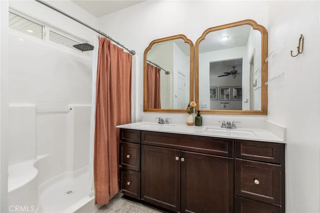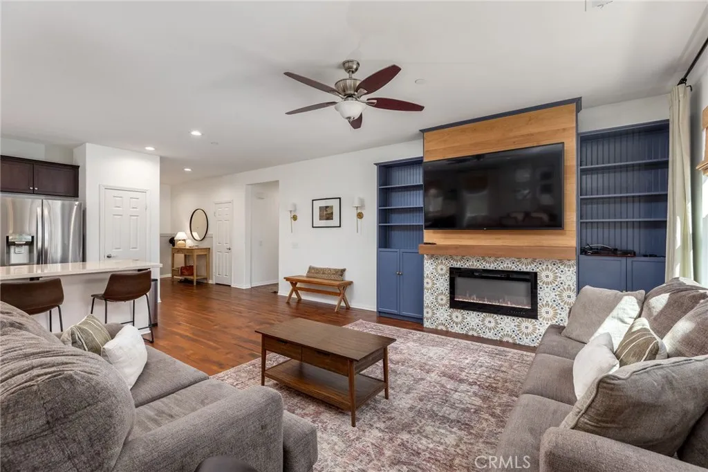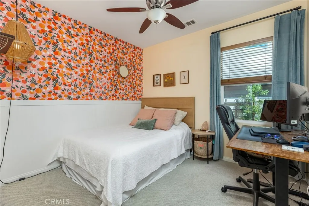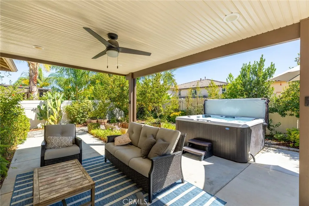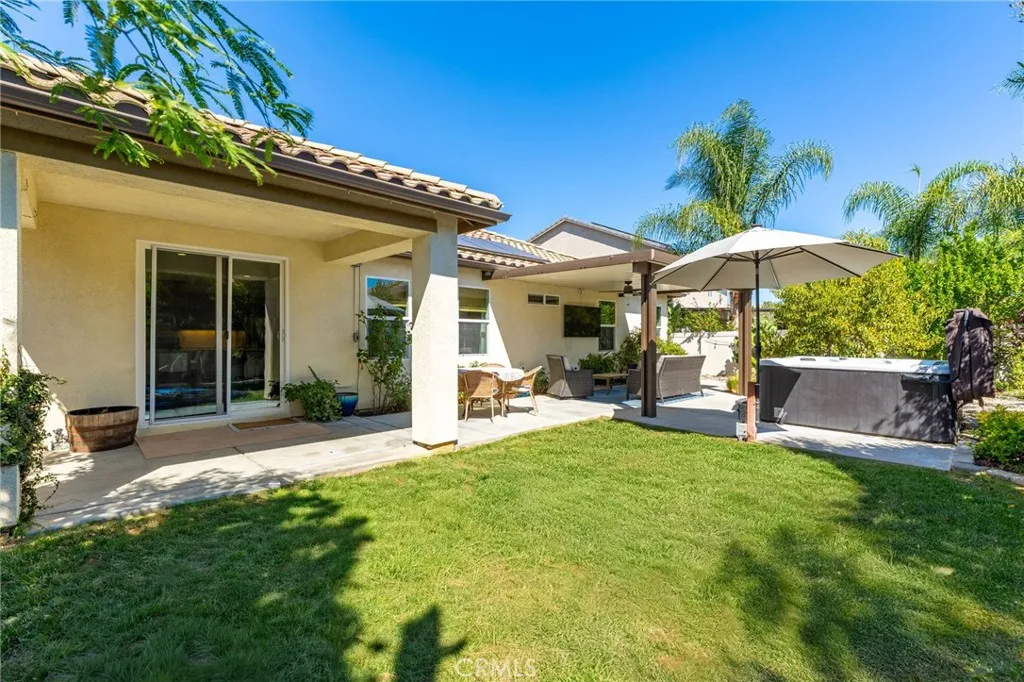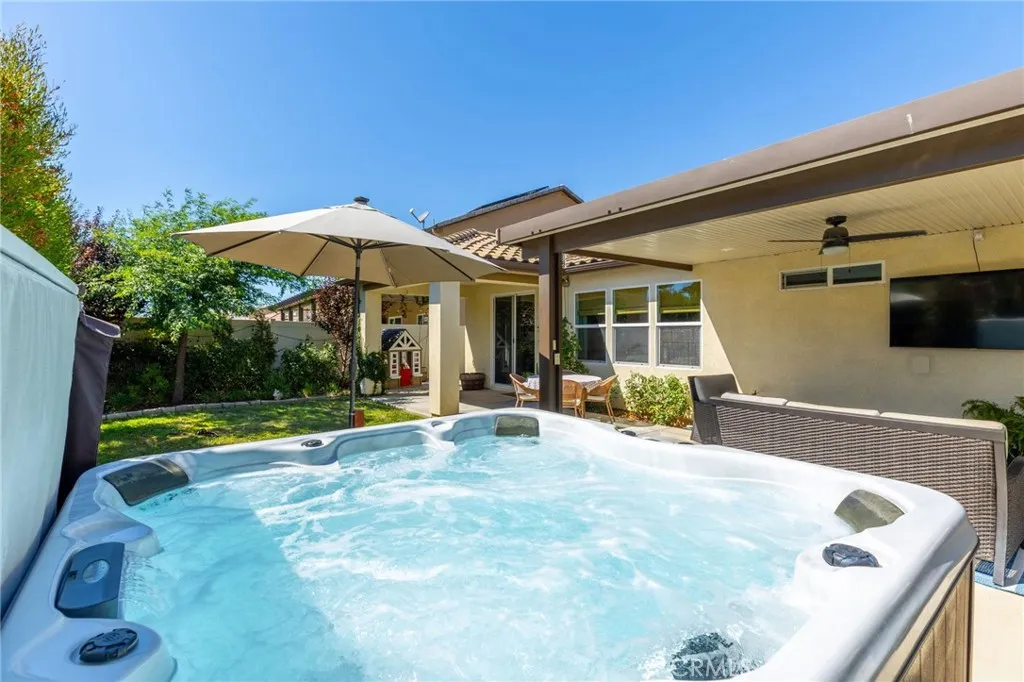 Single story 1860 sq. ft. home in the Mahogany Hills community featuring 3 bedrooms, 2 bathrooms, and a versatile den with built-in shelving suitable for a home office, playroom, or easily convertible into a 4th bedroom. Open concept floor plan, with expansive kitchen includes 10-foot island and huge great room, quartz countertops with plenty of storage. Laundry room offers excellent functionality with built-in storage, a drying rack, and a new washer. Additional upgrades include tankless water heater, Owned Solar System with 16 panels and a SolarEdge battery for nighttime energy use. The primary suite includes a walk-in closet and a private bath. Outdoors, youll find two covered patios, an outdoor TV, and a Cal Spa jacuzzi. The yard is a retreat, offering shade and privacy with mature treesincluding peach, nectarine, and limealong with a veggie garden bed and drought-tolerant landscaping in both the front and back. Located in the Mahogany Hills a community with low HOA fees, with green space, scenic walking paths, and three playground parks. Minutes from shopping, dining, and freeway access. All appliances convey;