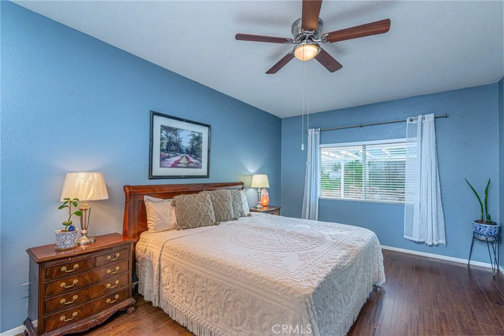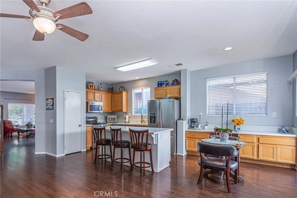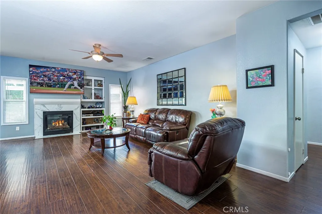 This beauty located on Hemet's east side neighborhood, "Valle Vista," checks all the boxes: single story, 4 bedroom, 3-car garage, RV parking, low taxes and...paid off solar! Featuring a lovely open concept floor plan with plank wood flooring, custom paint and window coverings along with a cozy fireplace in the living room, this home is ideal for entertaining and giving you plenty of room for all your furniture. The beautifully landscaped front yard makes this home the pride of the neighborhood and features loads of parking potential in the wide driveway with additional RV parking. The 4 bedrooms are spacious with room for large beds. The kitchen features custom quartz counters on the island and main cabinets with loads storage possibilities. The backyard offers a lovely patio cover with lots of privacy and has your citrus needs covered with several fruit trees including: navel orange, lime, blood orange and lemon. The solar panel system has been fully paid off so you'll get the added bonus to lots of free electricity to lower your cost of living. The Valle Vista area is a quiet area east of downtown Hemet and features spectacular mountain views and easy access to shopping and schools. Hurry, this rare opportunity won't last!