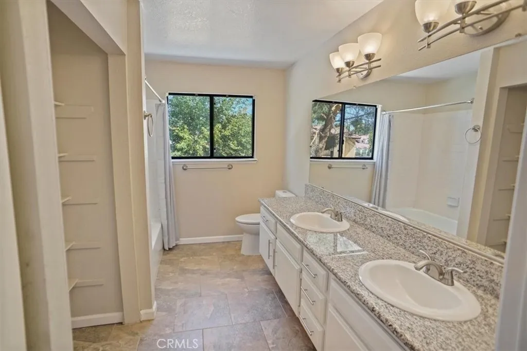 Amazing 4-Bedroom Fully Upgraded Home with RV Access Welcome to this beautifully upgraded two-story home featuring four spacious bedrooms plus a downstairs bonus room or fifth bedroom and three bathrooms. From the moment you arrive, the curb appeal stands out with used-brick hardscape and a gated RV access. Inside, the home offers a bright and open floor plan. The large living room boasts vaulted ceilings and new laminate flooring, leading to a formal dining room perfect for gatherings. The kitchen has been completely remodeled with brand-new cabinetry, soft-close drawers, quartz countertops, stainless-steel hardware, a five-burner gas range, built-in microwave, dishwasher, and stylish finishes. Adjacent is the cozy family room with a gas fireplace and built-in bar for entertaining. The downstairs also includes a guest bedroom and a convenient three-quarter bath. Upstairs, the spacious primary suite features a walk-in closet, ceiling fan, and a beautifully updated bathroom with dual sinks, granite countertops, fresh paint, and new carpet. Three additional bedrooms upstairs all include ceiling fans, new carpeting, and modern paint. An enclosed patio measuring approximately 13 by 20 feet extends the living space, with an additional covered patio just beyond. The backyard showcases extensive brickwork with planters and walkways, while custom four-inch baseboards throughout the interior add to the homes polished look. With block walls providing privacy and a location close to schools, shopping, and parks, this home is move-in ready and combines quality upgrades with thoughtful