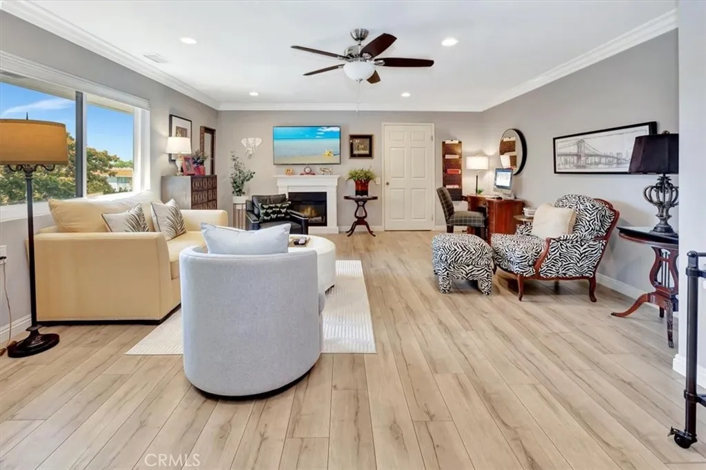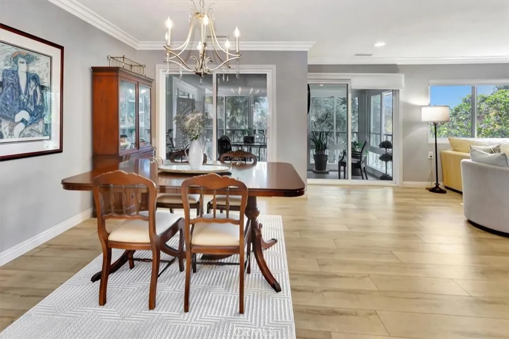 This one-of-a-kind home was crafted with care, not for profit, and must be seen to be fully appreciated. 1BR/1BA top-floor Garden Villa in a building with an elevator. Completely remodeled by the previous owner (not a flipper) using the best materials throughout, this west-facing home features a central air/heat system, tankless hot water system, smooth ceilings, LED can lighting, crown molding, and high-end vinyl flooring. The kitchen was redesigned and opened to the living area, and a custom walk-in wardrobe off the living room was thoughtfully added. A few years later, the current owner further enhanced the home by renewing the enclosed balcony with dual-pane windows and two dual-pane sliding doors from both the dining and living rooms. The result is a serene, treehouse-like retreat surrounded by mature hardwood trees. The kitchen appliances were also updated a few years ago. Click on "Virtual Tour" and look at iGUIDE 3D tours, including floor plans, 360 images, and room dimensions. You will actually be able to place your furniture before even coming on the property. Additional highlights include an extra storage room and an oversized parking spot with room for a car, two golf carts, and three large lockers. All just steps from Clubhouse 4 and near the 6th tee of Course 3. Located within Laguna Woods Village, residents enjoy an active 55+ lifestyle with unmatched amenities: a 27-hole championship golf course, 9-hole par-3 course, driving range, seven clubhouses, five swimming pools, state-of-the-art fitness center, tennis and pickleball courts, walking trails, and arts &