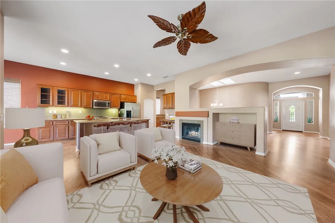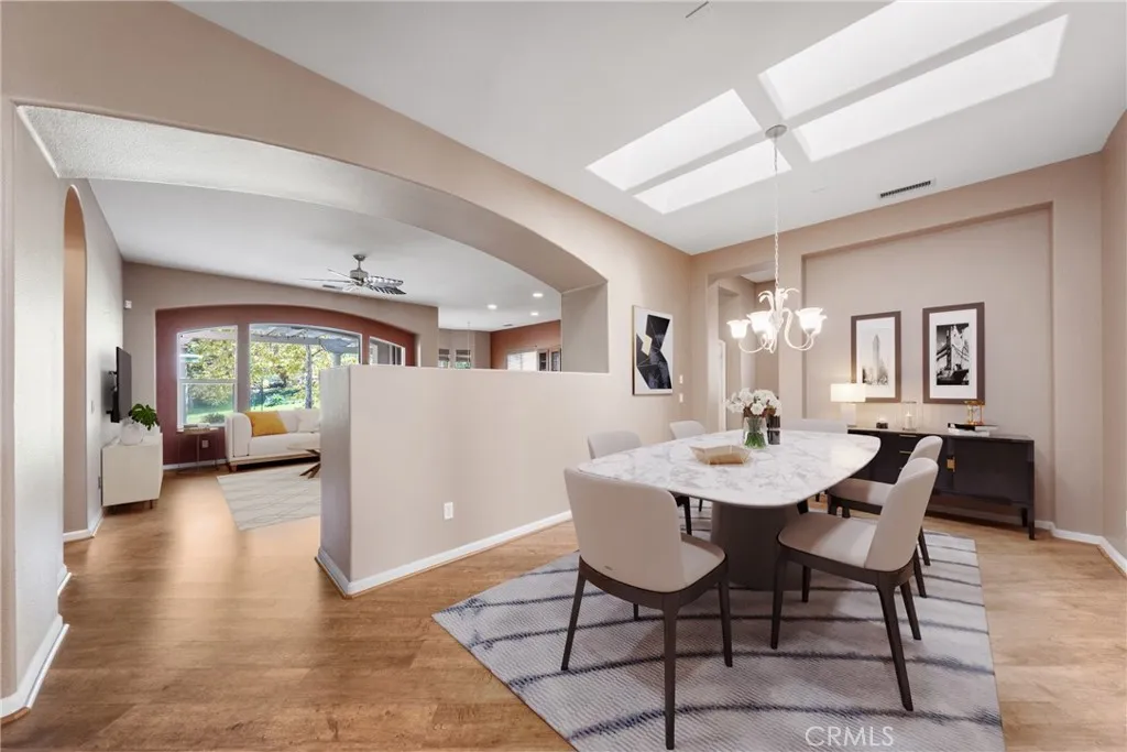 Welcome to Trilogy, the prestigious 55+ gated community nestled around the Golf Club at Glen Ivy. This beautiful 2-bedroom, 2-bathroom home plus office/den offers a modern, open-concept design with beautiful upgrades throughout. Step inside to find a welcoming entry leading into a spacious family room and kitchen, ideal for entertaining. The kitchen features rich wood cabinetry, granite countertops, a breakfast bar, and a breakfast nook, with stunning views of the Cleveland National Forest from every back-facing window. A formal dining room adds elegance for hosting special gatherings. The master suite is a private retreat, complete with a large walk-in closet, dual sinks, and a walk-in shower. A second bedroom sits on the opposite side of the home for added privacy. A dedicated office/den with glass doors provides the perfect space for working from home or reading. Step outside to your private patio where you can relax and enjoy peaceful golf course and mountain views, surrounded by mature landscaping. Living at Trilogy means enjoying resort-style amenities including indoor and outdoor Olympic-size pools, tennis courts, a clubhouse with entertainment spaces, a fitness center, BBQ/outdoor kitchen areas, and hiking trails. This home offers a perfect blend of comfort, style, and active living in one of Coronas most sought-after 55+ communities.