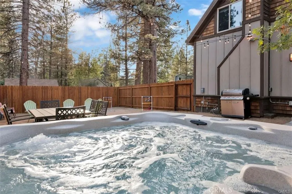 Great opportunity to own a home and a vacant land, strategically located, minutes from the Village, lake, ski slopes, and everything else Big Bear has to offer. chalet with unique and chic features in central Big Bear Lake. Interior has been completely remodeled in 2014 with energy efficient features. As well as the cement driveway, backyard fence a, 5 person jacuzzi tub and a fire pit added in 2022. Main level offers an open concept floor plan designed for entertaining, a central kitchen adjoining the living area and dining areas with slate floors throughout. Plenty of windows to bring in the natural light, recessed lighting throughout. Cozy upper level features wood floors, all three bedrooms with vaulted ceilings. Remodeled bathrooms have uniquely distressed wood vanities, vessel sinks, wood-look tiled shower enclosures with glass doors, and all modern fixtures. Tankless water heater, central forced air heating, stackable washer/dryer, recently installed EV charger. Currently it is being used as a short term rental home. The adjacent vacant land APN 0308-057-52-0000, 2500 sqft vacant lot is included in the sale, where you may built your second home.