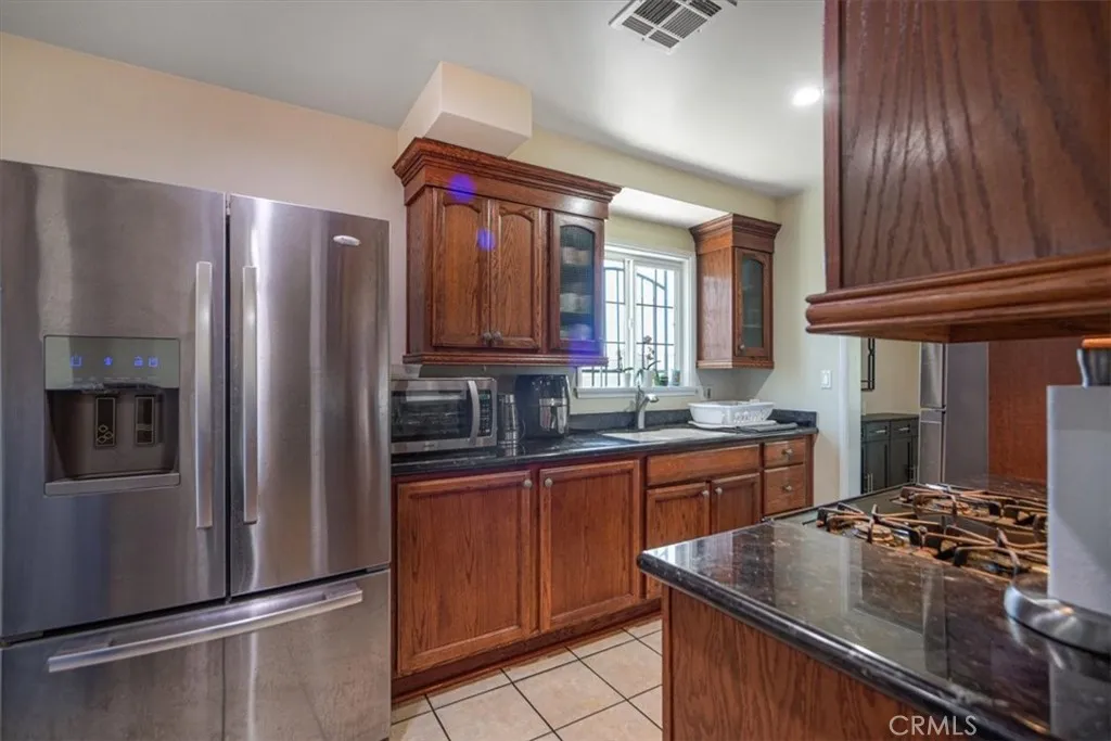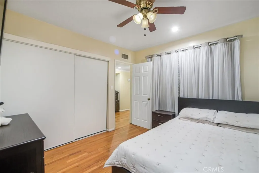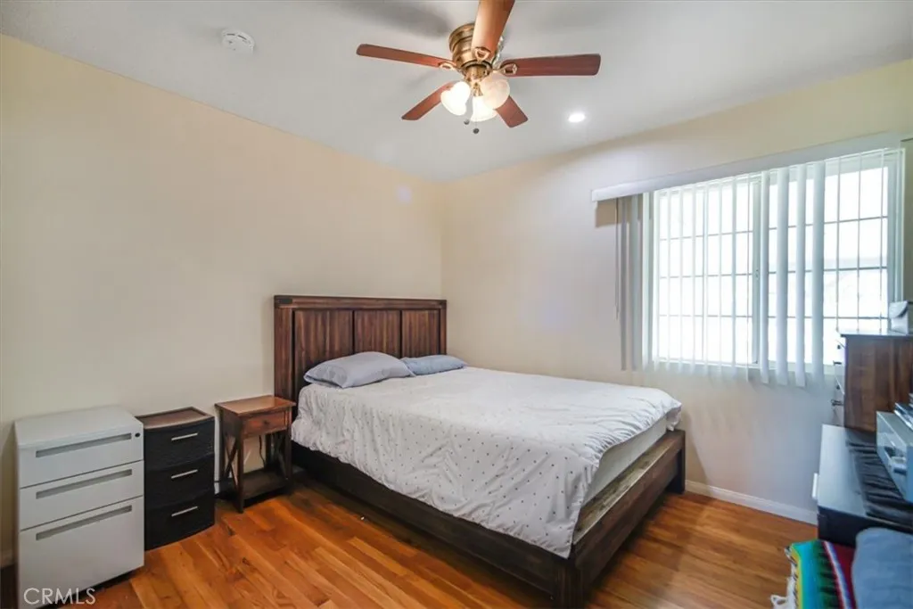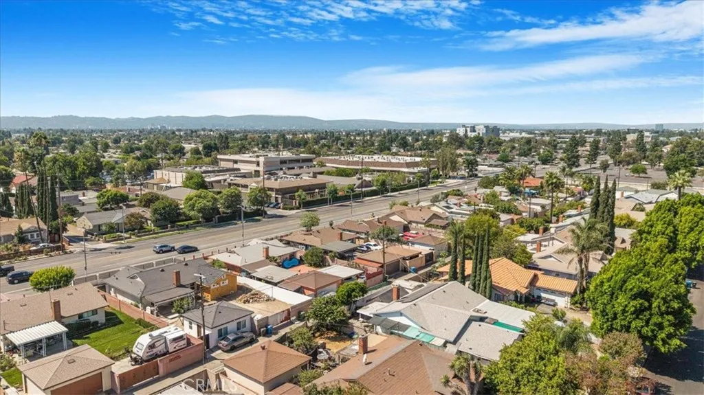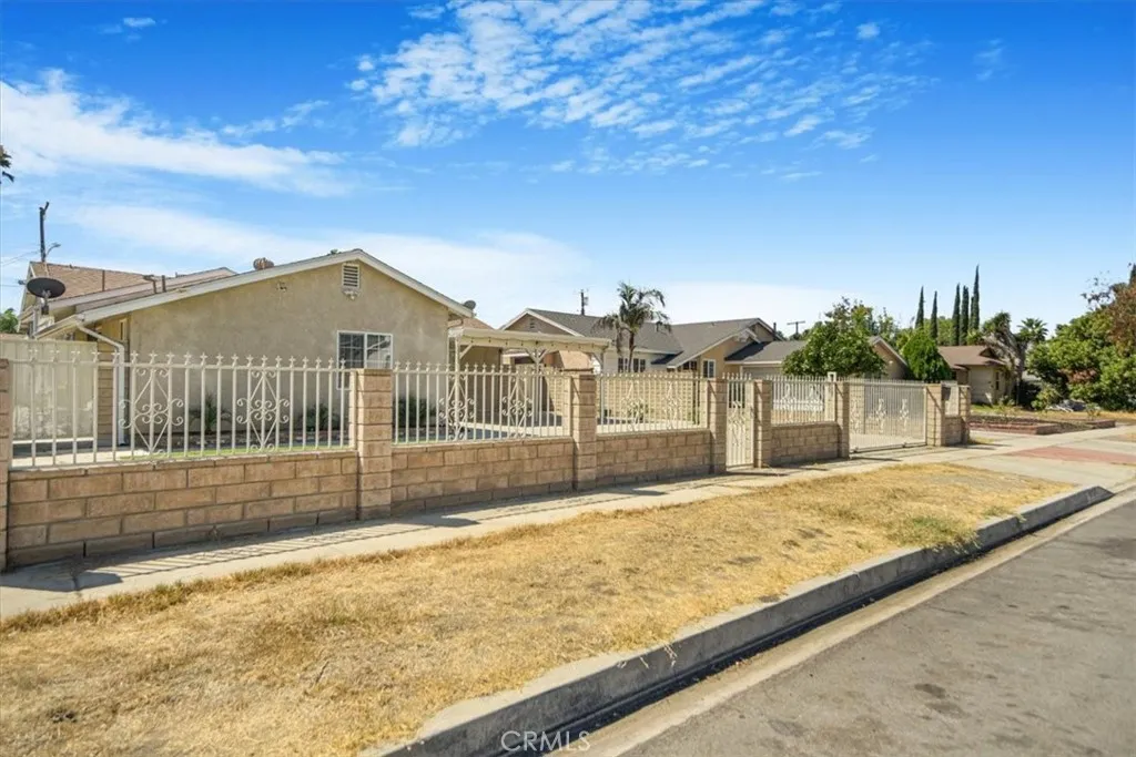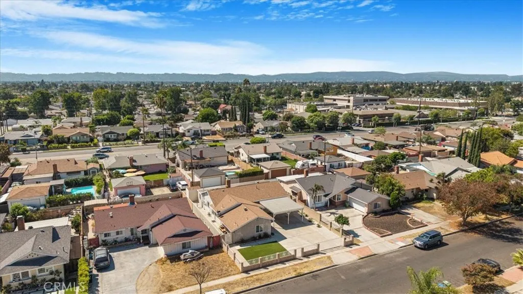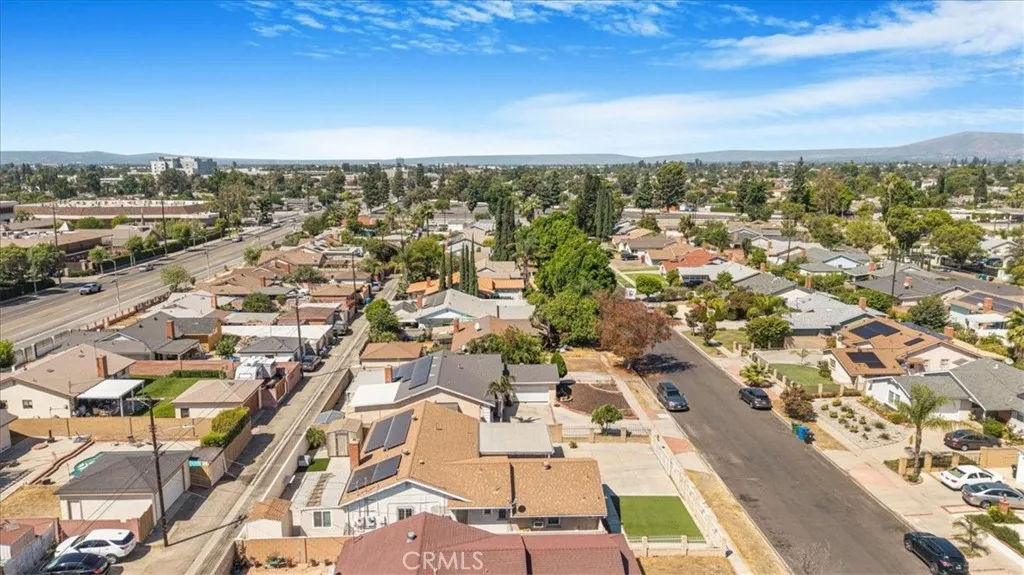 Welcome to this versatile 4-bed, 3-bath home offering 1,402 sq ft of well-designed living space on a generous 6,001 sq ft lot. Step inside to a bright living room centered around a classic brick fireplace, with recessed lighting and hardwood floors leading into a spacious dining area and galley kitchen featuring rich cabinetry, granite counters, and a full suite of appliances. Freshly painted with recently updated bathrooms, this home is truly move-in ready. Beyond the main living areas, the property offers tremendous flexibility: the garage has been converted into an addition with permits, creating a self-contained studio with its own bathroomperfect for extended family, guests, or rental income. Outdoor living is equally inviting, with a large paved patio under a covered pergola strung with lights, low-maintenance turf, and ample driveway parking behind a secure gate. The home also features a leased solar system that the buyer may continue if preferred, helping to keep utility costs down. Ideally located near major freeways, shopping, churches, and hospitals, this property delivers comfort, convenience, and income potential all in one!