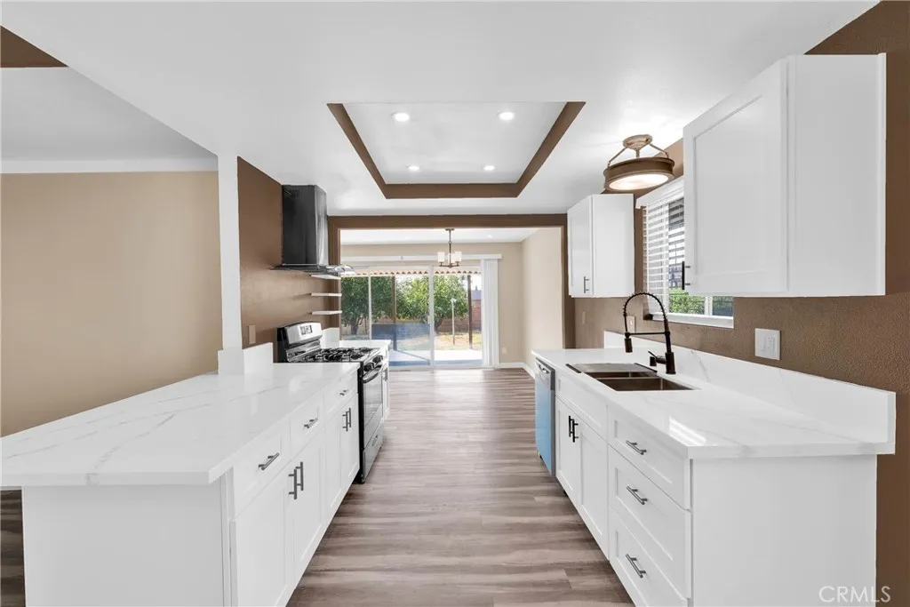 Large, beautifully renovated 5 bedroom, 3 bathroom two-story house. 2,170 sq. ft. of living space on a 9,000 sq. ft. lot. It comes with a 2-car garage with an automatic opener. This house has it all: NEW interior and exterior paint; NEW modern exterior lighting; NEW kitchen cabinets and hardware; NEW kitchen sink, faucet and garbage disposal; NEW granite countertops; NEW recessed lighting; NEW modern chandeliers; NEW stove; NEW range hood; NEW dishwasher; NEW bathroom vanities (with make-up section), faucets, lights, and mirrors; NEW tiled showers; NEW tempered glass shower in primary bathroom; NEW towel racks; NEW ceiling fans; NEW closet doors and shelving; NEW blinds throughout; NEW vinyl flooring throughout; NEW smoke and CO2 detectors. As if this weren't enough, the backyard comes with a covered patio and Tuff Shed for extra storage. And talk about LOCATION, LOCATION, LOCATION: This home is only 8 minutes from the Yaamava' Resort & Casino, and minutes from the Del Vallejo Leadership & STEAM Academy, Aquinas Catholic High School, and Barton Elementary. The 210 freeway and shops like Cardenas Market, Harbor Freight, and Extra Public Storage are only blocks away . Come get this newly renovated, centrally located gem before it's gone!