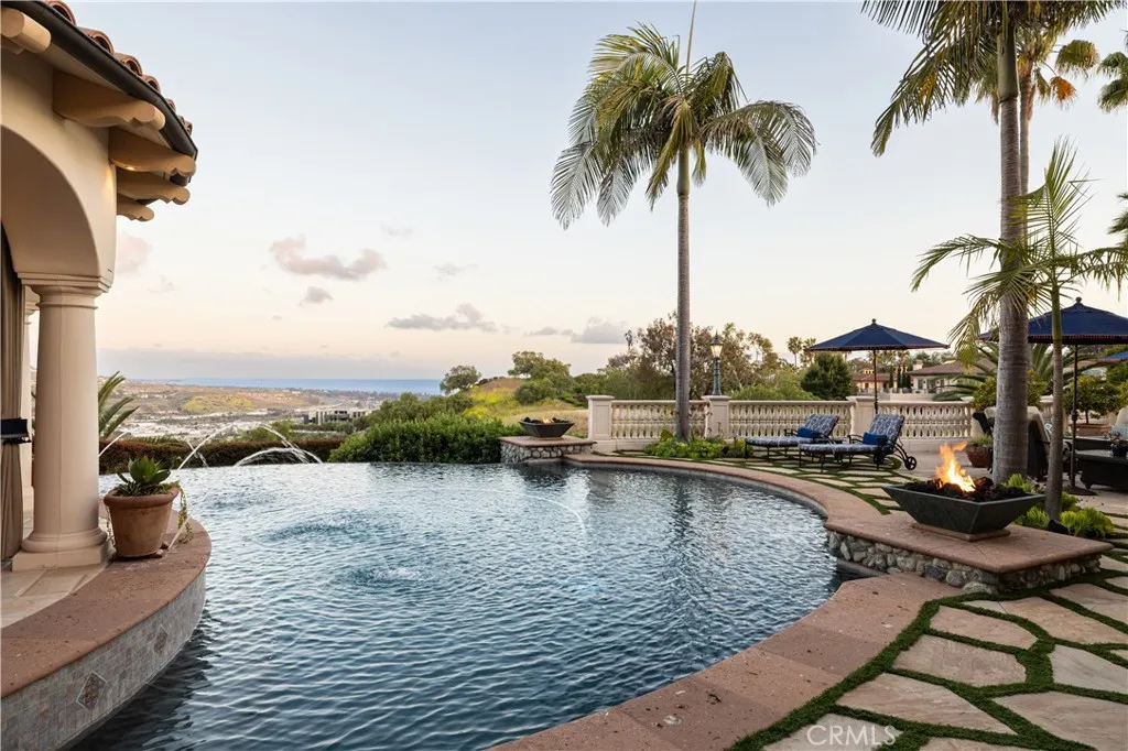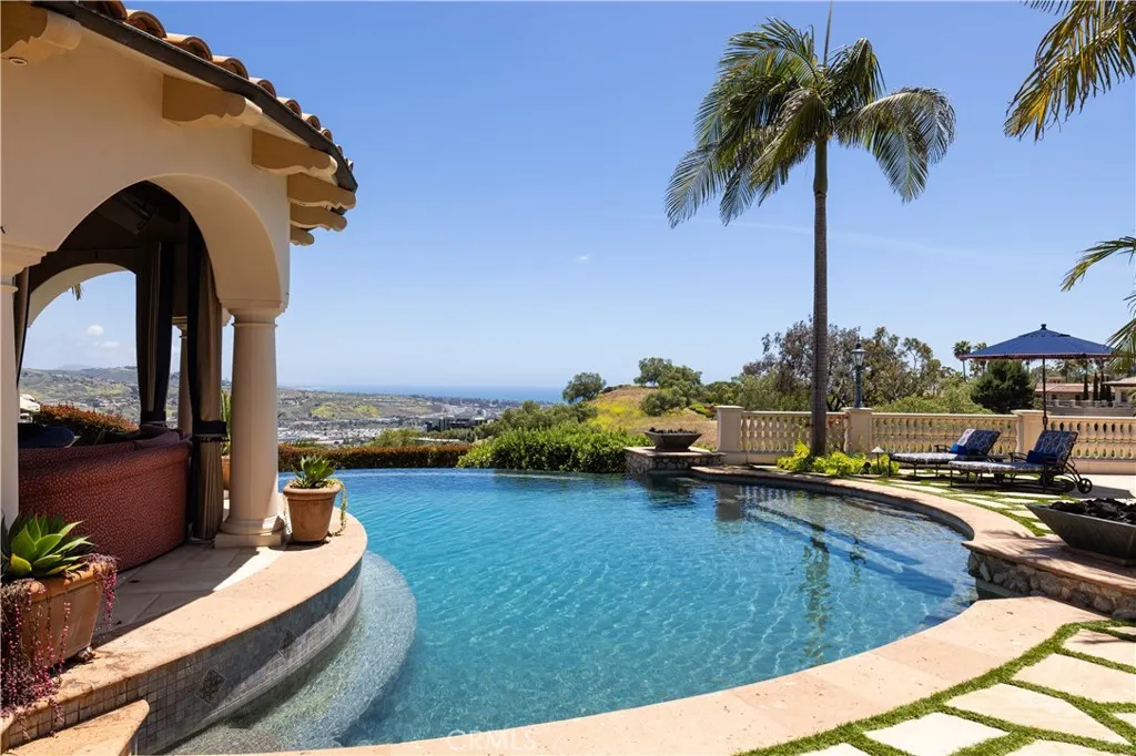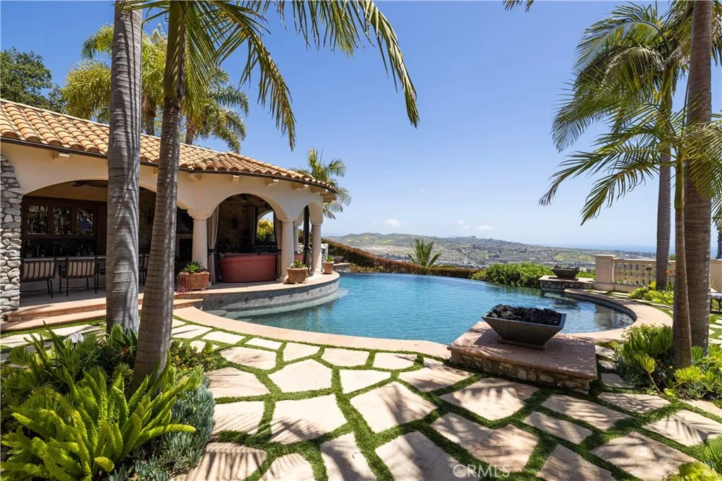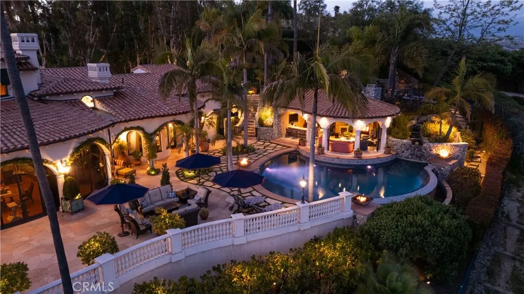 The Heart of Bear Brand Ranch. An unrivaled estate set on nearly an acre of gated privacy, surrounded by untouched land and rolling hills, 19 Old Ranch Road is a rare jewel in the prestigious enclave. Masterfully designed in timeless Spanish architectural tradition, the residence is enveloped by mature, lush landscapingtowering trees, vibrant gardens, and meandering pathways that evoke the romance of European countryside estates or the glamour of Old Hollywood. With commanding views stretching across the Capistrano Valley, Saddleback Mountains, and out to the Pacific Ocean and coastline, this sanctuary offers an unparalleled sense of serenity and grandeur. Expertly crafted, passionately designed, and meticulously maintained, the home features expansive grounds that invite refined indoor-outdoor living. A stunning resort-style pool with a cascading waterfall takes full advantage of the sweeping vistas. Anchoring the outdoor experience is a fully appointed cabana complete with a fireplace, bar, and loungean entertainers dream and a private escape in one. Inside, the residence offers a flowing, functional floorplan with 6 expansive and curated bedrooms, each with it's own en-suite bathroom seamlessly blending elegance with comfort. The dramatic great room to the outdoor spaces through custom steel French door, while the formal living space showcases a statement fireplace, stunning seating arrangements, offering a sense of refined luxury. A warm, inviting family kitchen and an intimate dining room with coffered ceilings connect to a private courtyard adjacent to a palm-filled a