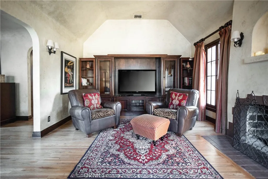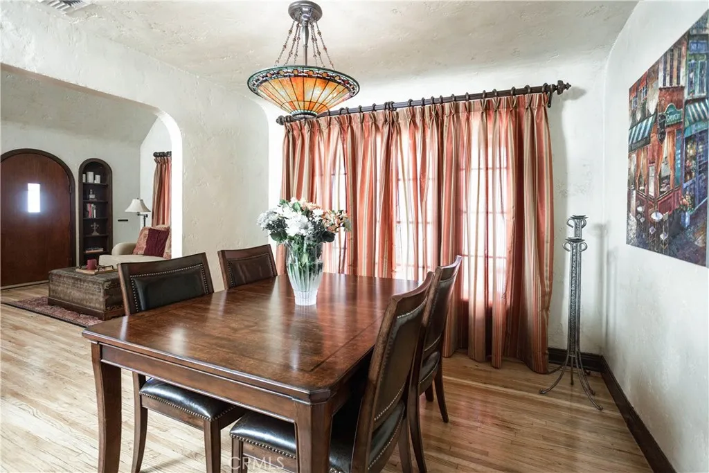 Wonderful opportunity to own a beautiful Tudor home in Rossmoyne area of Glendale. Loaded with curb appeal and originality. Step into the impressive living room through the original wooden arched door to its high ceiling, built-in bookcases, and gleaming hardwood floors throughout. Arch opening to formal dining room for wonderful dinners and entertainment. The cook's kitchen with its tiled countertops has new stainless steel appliances and large breakfast area. The primary bedroom suite has built-in illuminated fireplace, television, etc. The primary bath has double vanity sinks with tiled counters, tub with shower and large walk-in closet. Accessible from the primary suite is the lovely pavered patio and stone yard. Very delightful, peaceful and serene with its fountain and twinkling lites at night. You can entertain in this yard also with barbecue. Down the hall is another full bath, beautiful floor and tub with shower. The second bedroom has wood wainscoting and is currently used as office. The third bedroom is light and bright also with gleaming hardwood floors. The original wood of all of the doors make this home very impressive. From the front of the house you have a lovely mountain view. There is a wide driveway, 2 car garage with workshop bench. Also has a newer roof on this home. Beautifully landscaped. Conveniently located to Glendale schools, freeway, Nibley Park and shopping which includes Vons, Whole Foods, Trader Joe's and the new soon Erewhon Market. You wil be quite impressed with this home on lovely tree lined street.