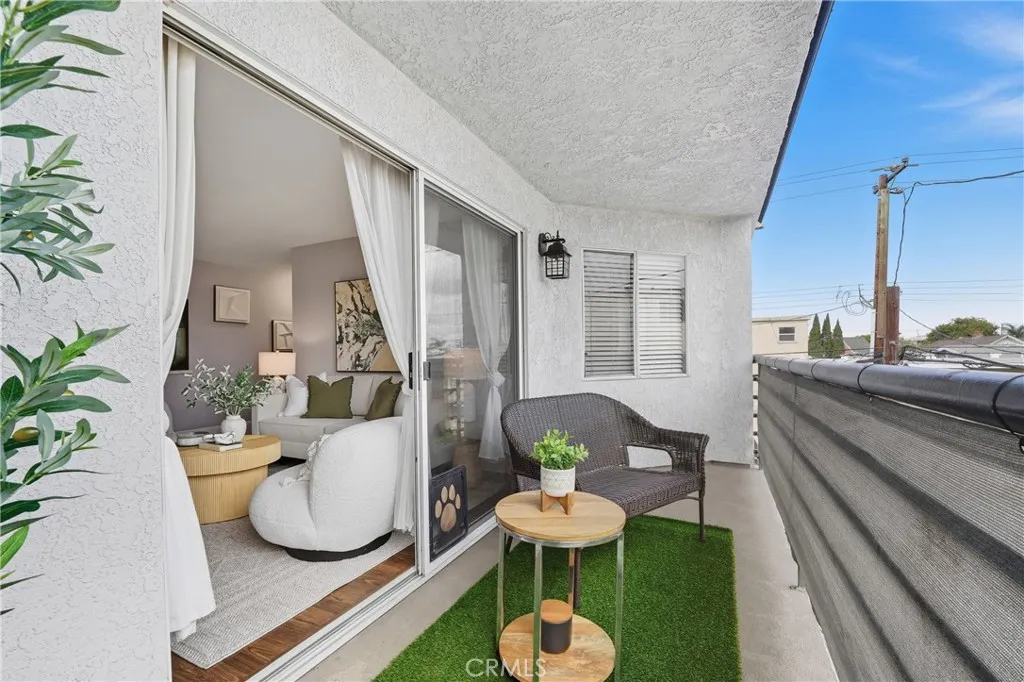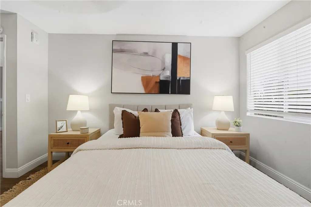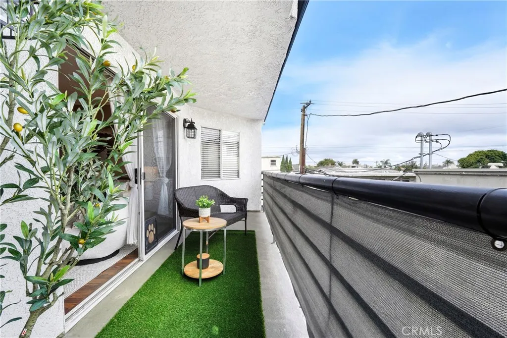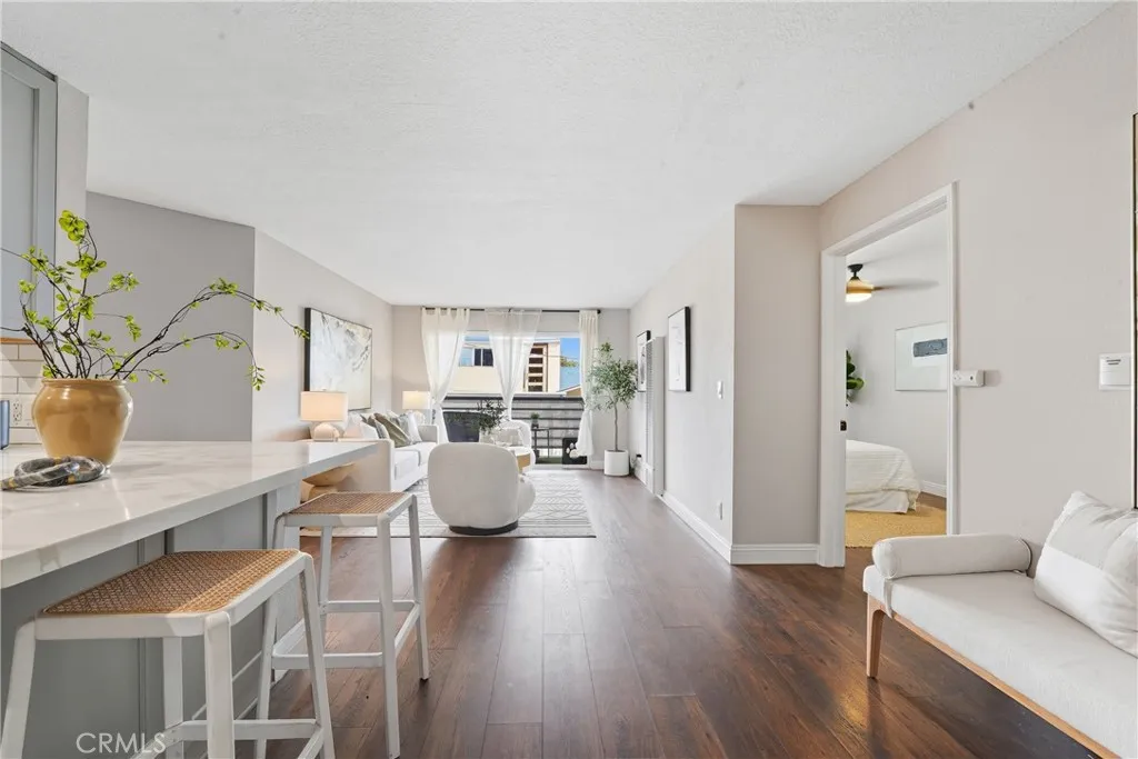 Discover coastal elegance in this turnkey 2 bedroom, 2 bathroom condo, perfectly nestled in the vibrant heart of Downtown Long Beach. Just steps from sun kissed beaches, trendy boutiques, and top tier restaurants, this residence blends urban sophistication with serene comfort, offering an unparalleled lifestyle of convenience and charm. Perched on the second floor in a coveted section of the building, this unit ensures exceptional privacy and tranquility, insulated from street noise. The property welcomes you with beautifully landscaped front grounds and abundant guest parking, setting the tone for a warm and inviting community. Step inside to an airy, open concept floor plan that exudes modern elegance. The fully remodeled kitchen is a culinary masterpiece, featuring sleek quartz countertops, stainless steel appliances (included), soft-close drawers, custom pull-out cabinetry, and a chic dry bar with ample storage. This space flows effortlessly into the bright living area, which opens to a private patio; your personal oasis for morning coffee or gorgeous sunsets in the evening. Rich laminate flooring and textured ceilings create a refined ambiance throughout, complemented by three portable A/C units for year-round comfort. The primary suite is a serene retreat, complete with a ceiling fan, dual wall closets offering generous storage, and an ensuite bathroom with a shower/tub combo. The spacious guest bedroom features a large walk-in closet, while the second bathroom impresses with a walk-in shower, stylish tile flooring, and additional storage. A convenient hall closet pro