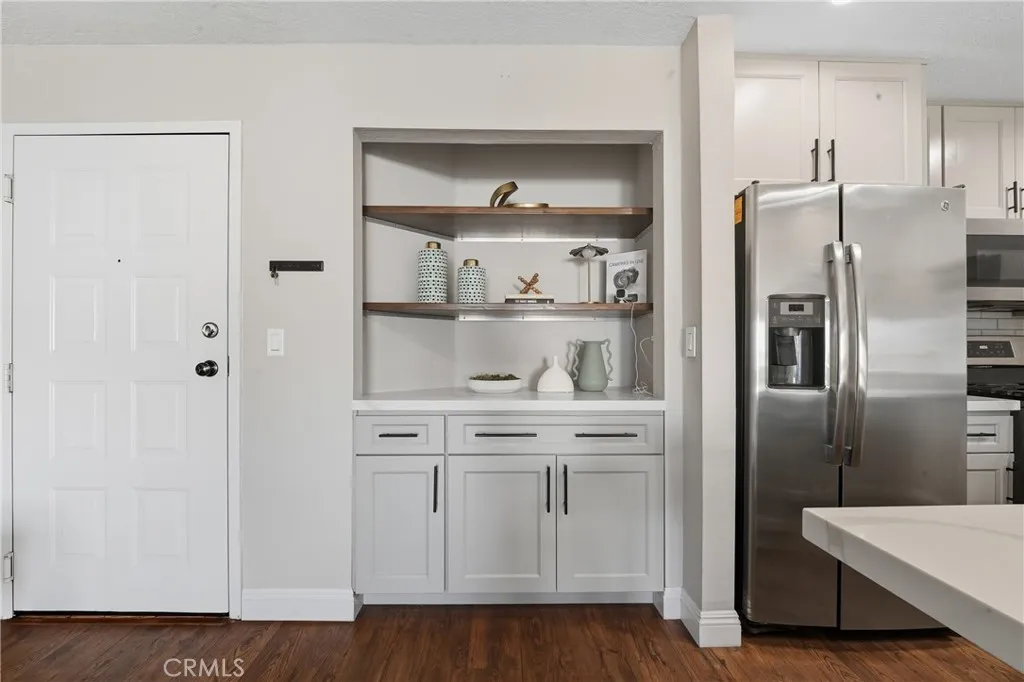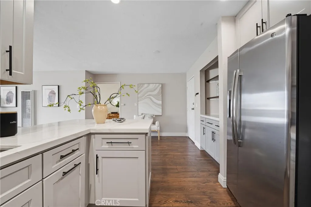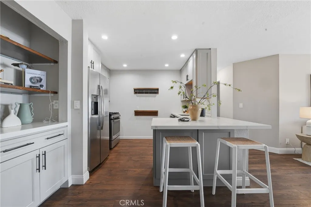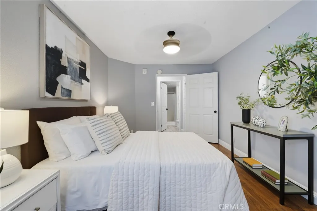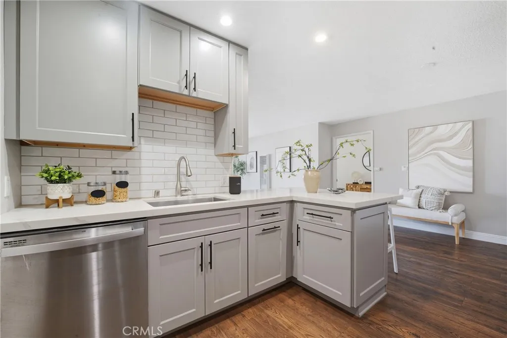 Discover coastal elegance in this turnkey 2 bedroom, 2 bathroom condo, perfectly nestled in the vibrant heart of Downtown Long Beach. Just steps from sun kissed beaches, trendy boutiques, and top tier restaurants, this residence blends urban sophistication with serene comfort, offering an unparalleled lifestyle of convenience and charm. Perched on the second floor in a coveted section of the building, this unit ensures exceptional privacy and tranquility, insulated from street noise. The property welcomes you with beautifully landscaped front grounds and abundant guest parking, setting the tone for a warm and inviting community. Step inside to an airy, open concept floor plan that exudes modern elegance. The fully remodeled kitchen is a culinary masterpiece, featuring sleek quartz countertops, stainless steel appliances (included), soft-close drawers, custom pull-out cabinetry, and a chic dry bar with ample storage. This space flows effortlessly into the bright living area, which opens to a private patio; your personal oasis for morning coffee or gorgeous sunsets in the evening. Rich laminate flooring and textured ceilings create a refined ambiance throughout, complemented by three portable A/C units for year-round comfort. The primary suite is a serene retreat, complete with a ceiling fan, dual wall closets offering generous storage, and an ensuite bathroom with a shower/tub combo. The spacious guest bedroom features a large walk-in closet, while the second bathroom impresses with a walk-in shower, stylish tile flooring, and additional storage. A convenient hall closet pro