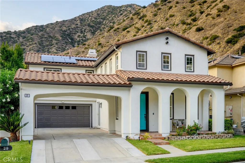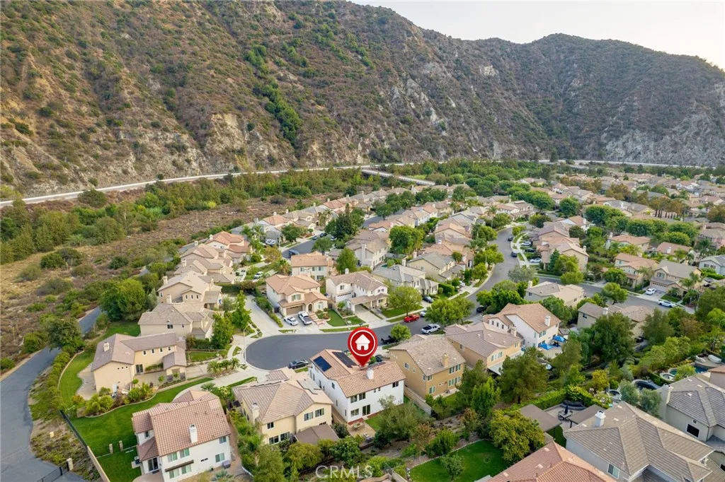 TURNKEY... a truly move-in condition home! Nestled against the stunning backdrop of the San Gabriel Mountains and the scenic San Gabriel River, this beautifully remodeled 4-bed/3-bath Spanish-style home is located on a cul-de-sac in the exclusive gated Mountain Cove community offering 24/7 security, peaceful surroundings, and resort-style amenities. Built in 2003 and meticulously updated, this home boasts an open-concept modern floor plan with a formal living room and a spacious great room that seamlessly connects the remodeled kitchen, dining area, family room, and half bath. Home improvements include: September 2025 new interior paint throughout, 2023 new exterior paint, August 2025 kitchen remodel, 2023 primary suite bathroom remodel, 2022 new HVAC system (new central air & heat), 2023 new 30 year double layer underlayment roof, 2023 new Evervolt solar system (paid for, NOT leased), 2024 updated electrical, 2024 garage wired for dual EV car chargers, 2025 switches and outlets updated, 2023 new hot water heater, 2023 new rain gutters, 2024 new wifi connected smart sprinkler controller & updated irrigations system, and 2022 tented for termites. The remodeled kitchen features new quartz countertops, new porcelain kitchen sink with brass faucet, new stove top, and the kitchen cabinets have been freshly painted and adorned with new hardware. Upstairs youll find four spacious bedrooms and two full baths. The primary suite is a true retreat with walk-in closet, and a luxurious remodeled bath that includes double sinks, soaking tub and separate shower. The primary suite shower