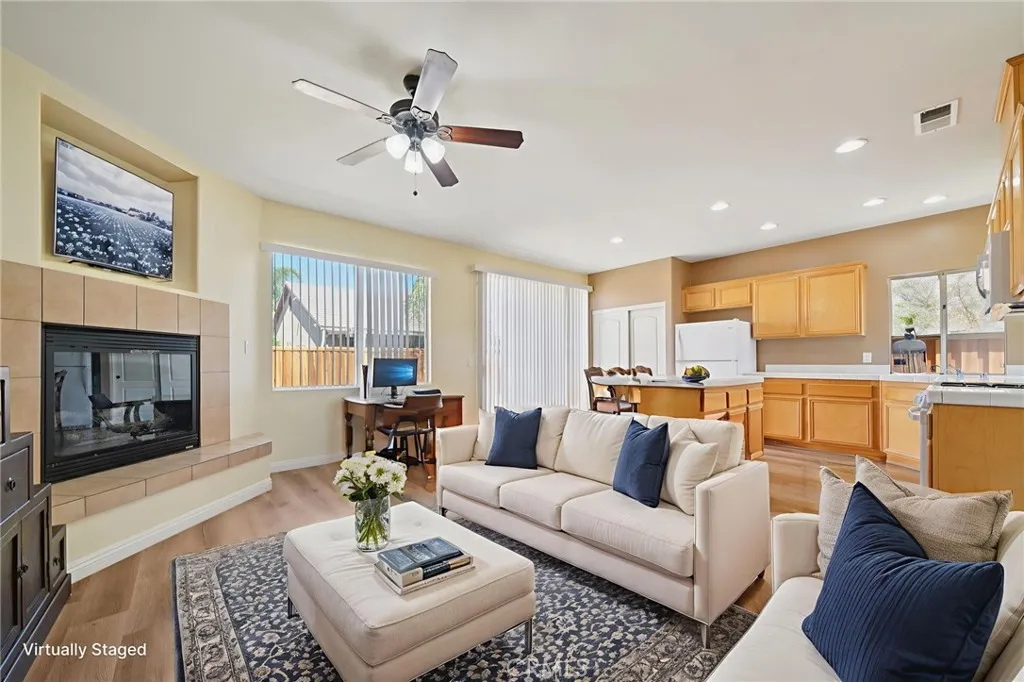 Your new home in the heart of San Jacinto awaits! This inviting single-story property offers 4 bedrooms, 2 full bathrooms, low taxes, no HOA, and a peaceful setting on a quiet street. Step inside to a freshly painted interior with sleek laminate flooring throughout, no carpet anywhere! The home comes complete with appliances included and a cozy fireplace in the dining area, perfect for family meals or entertaining. The exterior shines with new paint and brand-new fencing for added privacy, while the spacious 3-car garage provides plenty of room for vehicles, toys, or storage. Take in the stunning mountain views right from your doorstep while enjoying close proximity to schools, shopping, and Mt. San Jacinto College. Offering space, comfort, and convenience, this home is truly move-in ready!