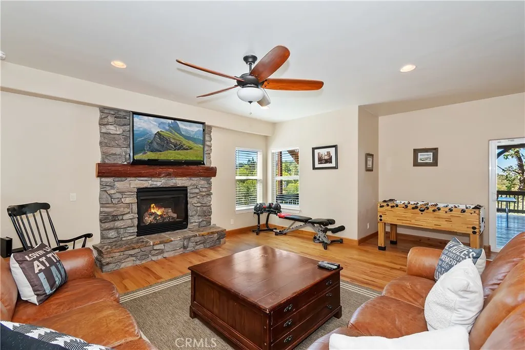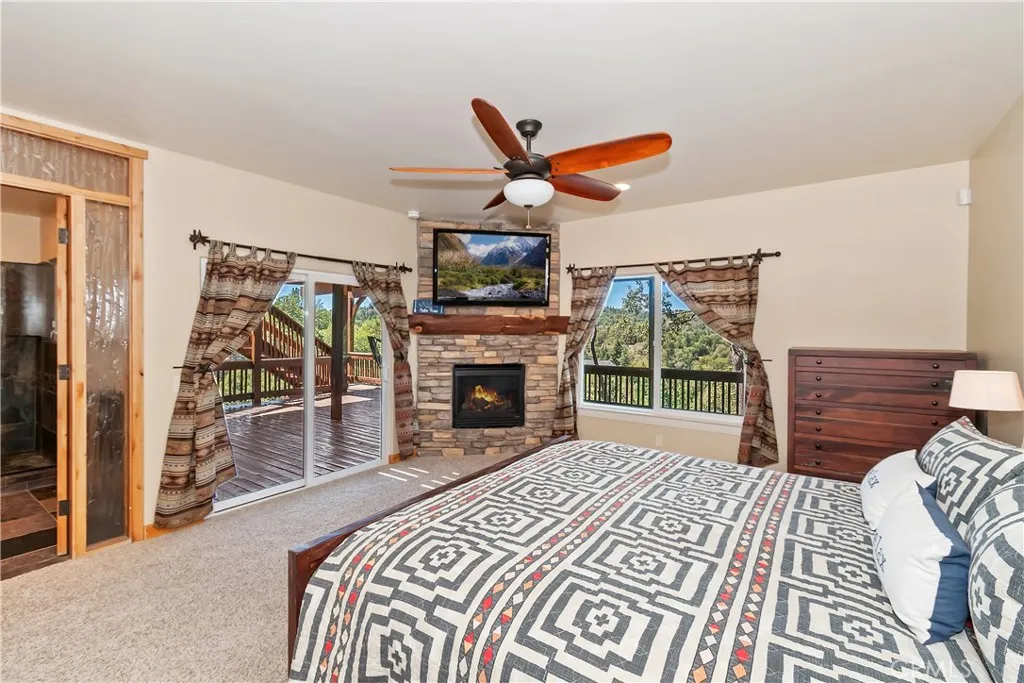 What You See: A seamless blend of indoor comfort and outdoor beautywarm firelight, soft evening breezes, and a veranda where the sunset paints every gathering in gold. This is where dinner parties turn into unforgettable nights .This custom residence features high end finishes and design elements including soaring ceilings, large windows and glass doors allowing for an abundance of natural light, beautiful wood accents while encompassing over 3000 sq feet of gracious living space. The home exudes elegance and provides the ultimate venue for indoor/outdoor living and entertaining. As you enter the gated courtyard you feel a sense of beauty and warmth and are mesmerized by the stunning views. The primary suite comes with fireplace and has Primary bathroom with jetted tub and shower. Sliders leading to a balcony overlooking mountain and city light views. There are an additional 2 bedrooms and private office and large laundry room. The 3rd hosts a second family room with fireplace and bar, pool table , sauna and steam shower, additional room with fireplace. Large Deck with ping pong table and various gym equipment can be moved outside. Large oversized 2 car garage which enters into the kitchen. You are close to Tavern Bay and many hiking trails. The house is in Arrowhead Woods which gives you Lake Rights.