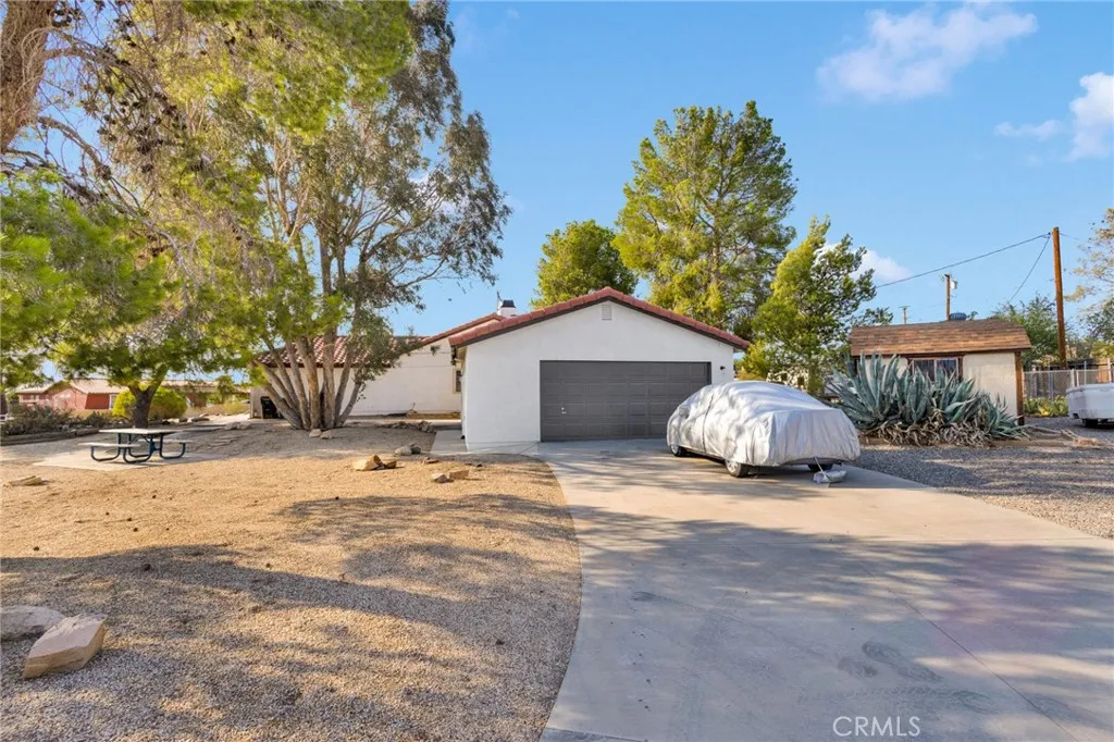 Welcome to this beautifully maintained Mediterranean-style home located in one of Apple Valleys most desirable neighborhoods! Situated on a spacious .8-acre corner lot, this property offers the perfect blend of comfort, style, and functionality. A charming courtyard entry sets the tone for this inviting residence. Inside, youll find 3 bedrooms and 2 bathrooms across 1,942 sq. ft. of living space, featuring multiple living areas including a cozy living room, a separate family room, and an additional converted game roomperfect for entertaining family and friends. The large, open kitchen provides ample counter space and cabinetry, making it ideal for cooking and gathering. From the dining area, step out onto a very spacious covered patio, perfect for outdoor dining, relaxing, or hosting get-togethers year-round. Parking and storage are never an issue with the attached 2-car garage plus an extra-large detached 2-car garage, offering plenty of space for vehicles, toys, or a workshop. The property is completely fenced and cross-fenced, with RV parking and ample room for all your outdoor needs. Enjoy the privacy and functionality of this expansive lot with plenty of space for entertaining, gardening, or creating your dream backyard oasis. Dont miss this rare opportunity to own a Mediterranean gem with a courtyard entry, versatile living space, and exceptional parking in a sought-after Apple Valley location!