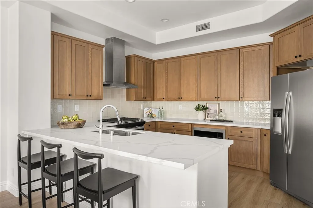Nestled in a secure gated community within walking distance to the renowned Tustin Ranch Golf Course, this stunning property combines modern elegance with everyday convenience. Shopping, dining, and entertainment are just moments away, making this an ideal place to call home. Step inside to find a fully renovated interior featuring luxury vinyl plank flooring, fresh interior paint, recessed lighting, and designer fixtures throughout. The chef-inspired kitchen boasts sleek quartz countertops, brand-new stainless steel appliances, and custom cabinetry. The home offers spacious bedrooms, including a luxurious primary suite with a beautifully remodeled bathroom showcasing a walk-in shower, soaking tub, and dual-sink vanity. The secondary bedroom is a private en-suite with its own fully updated bathroomperfect for guests or extended family. Additional highlights include a dedicated laundry room and an attached garage finished with epoxy flooring and drywall for a clean, polished look. Surrounded by Award Winning Schools.