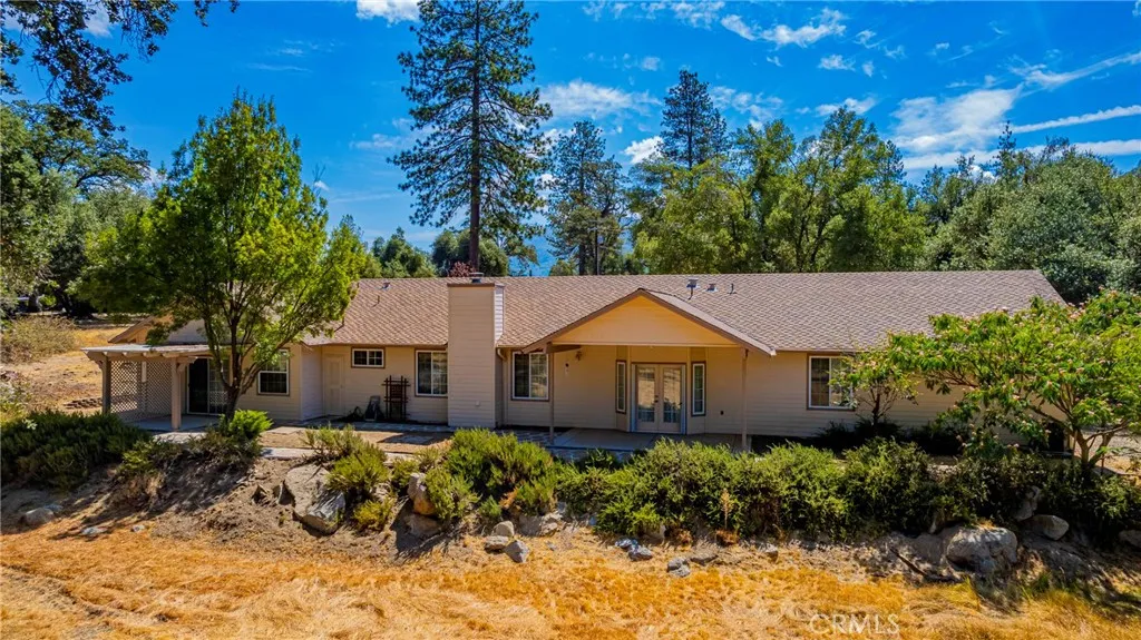 Golfers and non-golfers will appreciate this River Creek Estates custom home.. As you enter the home you note the bay window in the living area which has pocket doors for closing off from the main living area. Family room has a lovely fireplace with raised hearth, lots of windows to take in the back views. Kitchen has a eating bar, walk in oversized pantry and plenty of counter space. Dining area has been modified to have room for large family meals and french doors to the patio. Master bedroom is quite large with french doors leading to a private patio. Mastervbath includes a garden tub and shower. 3 car oversized garage with 2 roll up doors. Lots and lots of cabinets and workshop area for the handy person in the household. Rv parking with hook ups. Lovely rock out croppings and beautiful trees. All this situated on River Creek Golf Course and located on a quiet cul de sac. Close to Bass Lake and beautiful Yosemite.