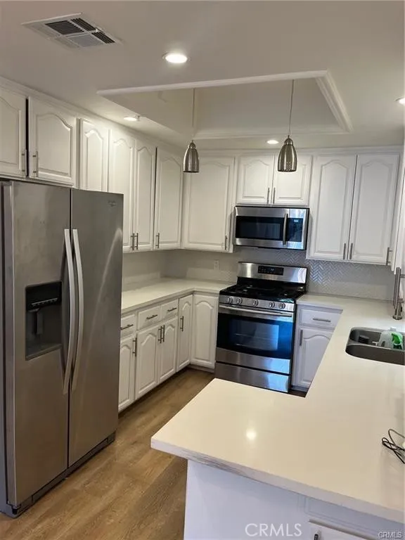 Bright and spacious 2-bedroom, 2-bathroom condo. Built in 1990, this unit features fully renovated bathrooms in both bedrooms, providing privacy and convenience. The kitchen is equipped with quartz countertops, stainless steel appliances, and modern cabinetry. Recess lighting throughout . New laminate flooring flows throughout the open floor plan, enhancing the bright and airy feel with abundant natural light. Additional amenities include a separate laundry room with closet for extra storage and central air conditioning and heating for year-round comfort. Conveniently located near Ventura Boulevard, this condo offers easy access to shopping, dining, and transportation.