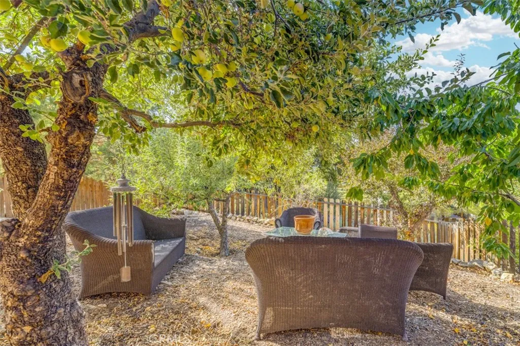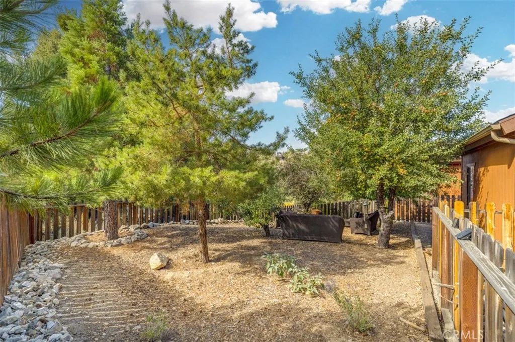 Step into your mountain sanctuary at 15420 Live Oak Way, where rustic charm meets modern comfort in a single-level haven that feels like home the moment you arrive. Nestled on a beautifully landscaped lot with mature trees and a fenced rear yard, this retreat beckons you to embrace the serenity of mountain living, perfect for full-time residence, remote work, or a vacation escape. Enter through the welcoming foyer into a spacious great room that captures the heart. Soaring wood-beamed ceilings and large windows frame stunning mountain views and vibrant sunsets, while a freshly cleaned wood-burning stove adds cozy warmth. New hardwood flooring (2024) flows throughout, tying the open-concept layout together with timeless elegance. The kitchen, open to the great room, features a large island for casual meals or lively gatherings, ample storage, and modern appliances. The adjacent dining area spills onto a spacious deck, expanding your living space into the crisp mountain airperfect for morning coffee or evening stargazing. The split-wing design ensures privacy. The primary bedroom, a tranquil retreat, offers an en-suite bathroom, walk-in closet, and private deck access for quiet moments. Two well-sized bedrooms share a full guest bathroom, and garage access nearby for convenience. The attached garage, plus extra parking in front and on the side, makes hosting effortless. This home is as practical as it is inviting. A 2022 electrical panel upgrade, new water heater, softener, and filtration system (all 2022) ensure efficiency and peace of mind. A rainproof under-deck storage ar