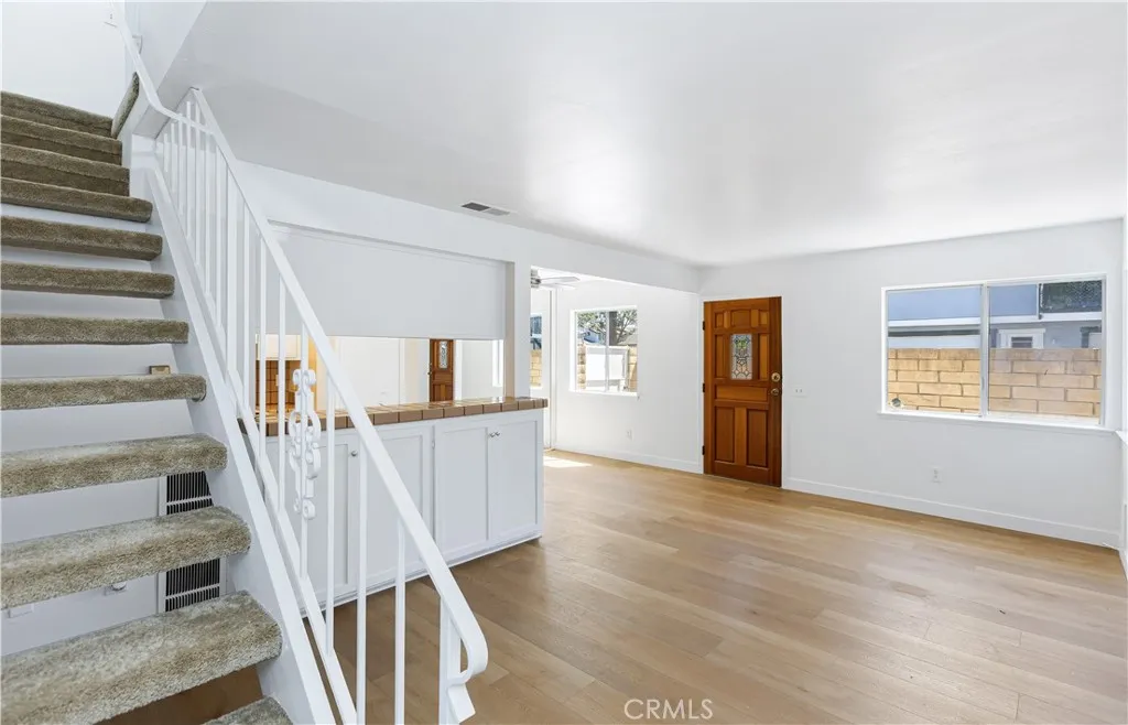 This charming and updated end-unit condo located in the desirable Huntington Harbor Heights Villas community. This two-bedroom, one-bath home features a convenient ground-floor entrance and a private patio, perfect for enjoying the coastal breeze. Inside, the open-concept layout creates a spacious and inviting atmosphere, seamlessly connecting the living room, dining area, and kitchen. Upstairs, you'll find both bedrooms, including a primary suite with a walk-in closet. The home has been freshly painted and thoughtfully updated with new laminate vinyl plank flooring throughout the downstairs and bathroom, as well as new carpet on the stairs, hallway, and bedrooms. The unit has easy access to the garage and enjoys the privacy and quiet of an end location. Residents of Huntington Harbor Heights Villas enjoy a range of community amenities, including a pool, sports court, clubhouse, and beautifully maintained park-like grounds shaded by mature trees. Ideally situated near the harbor, beaches, shopping, and dining, this home has the best of coastal living in a serene, well-kept neighborhood.