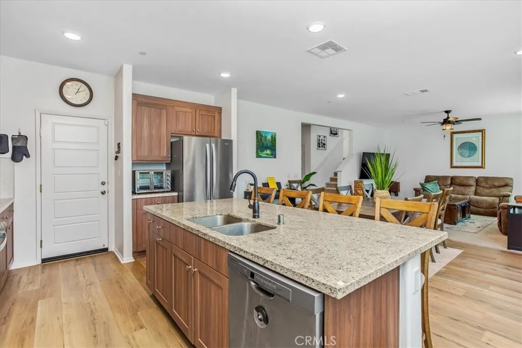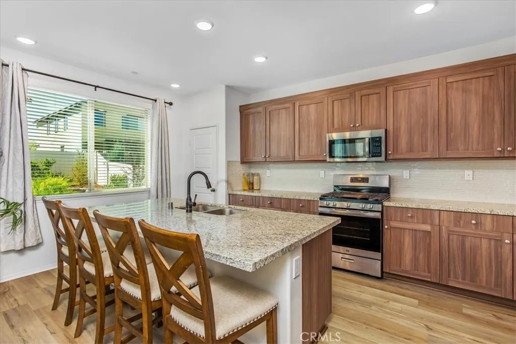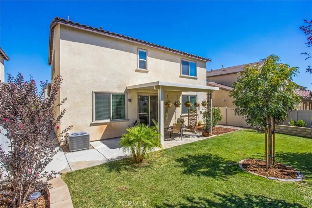 Welcome to this beautifully upgraded 2-story home in the sought-after Atwell community. Built in 2020, this spacious residence offers 34 bedrooms, 2.5 bathrooms, and thoughtful upgrades throughout. Step inside to find open-concept living with upgraded flooring, custom baseboards, framed mirrors, window sills, and a stylish kitchen backsplash. The downstairs office includes a custom doorway, making it ideal for working from home. Tech-savvy buyers will appreciate whole-home Cat5 wiring with dual Cat5 in one room, cordless TV wall mount, and additional dimmer lighting in the kitchen. Upstairs, the primary suite features a walk-in closet with a full mirrored door. The home also includes five ceiling fans, upgraded toilets, blinds, and custom curtains. A new A/C unit ensures year-round comfort. The backyard is perfect for entertaining with a patio cover, extended concrete slab, custom retaining wall with planters, sprinkler system, and mature landscaping. Enjoy your own mini orchard with avocado, Meyer lemon, sweet orange, purple leaf plum, pistache, crepe myrtles, and more. Living in Atwell means access to resort-style amenities: multiple pools (including a lap pool), spas, clubhouse, BBQs, playgrounds, walking trails, and parks. Conveniently located minutes from shopping, dining, and the 10 Freeway, this home is both commuter-friendly and community-driven. Dont miss your chance to own a move-in ready home with premium upgrades in one of the areas most desirable neighborhoods!