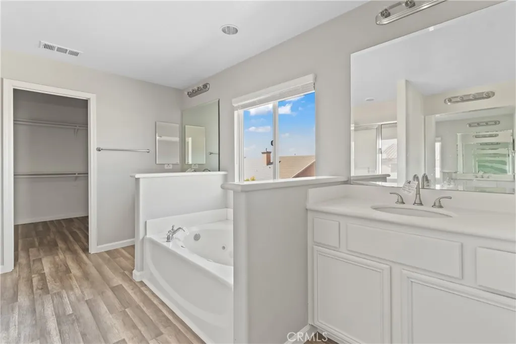 Welcome to this inviting two-story home in Quartz Hill featuring 5 bedrooms, 3 bathrooms, and a spacious loft. Offering 2,859 sq. ft. of living space, the open floorplan highlights soaring ceilings, recessed lighting, and laminate flooring throughout. The formal living and dining rooms connect to a well-designed kitchen with granite countertops, wood cabinetry, appliances, and a breakfast bar, opening to the family room with a cozy fireplace. The first floor includes a bedroom and full bath, while upstairs offers the loft, laundry room, and four bedrooms, including the primary suite with dual vanities, soaking tub and shower. The private backyard features a covered patio and side yard, perfect for relaxing or entertaining. Nestled on a quiet cul-de-sac, this home combines comfort, style, and a desirable location.