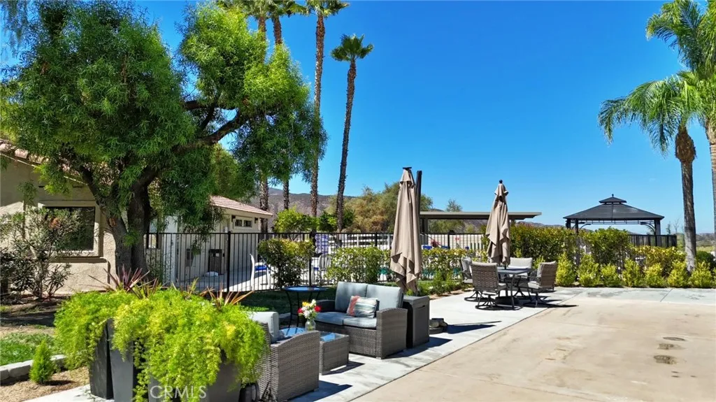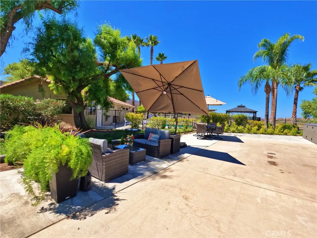 Welcome to your corner RV lot with expansive views of open space and surrounding hillside. This lot is located near pool 5 and main club house. A lighted stone capped column with golf cart parking is a touch of convenience. A crushed granite planter bed and drought tolerant plants adds a clean, fresh look to enjoy. Additional poured concrete creates large seating and entertaining areas. South side of property is lined with a recently planted hedge, landscape rock and stone boarder. Beyond the property line, common area with a large shade tree and grass area provides separation from neighboring RV lots. The resort itself is not age restricted and offers the best in southern California vacation living. Located 45 minutes outside of Palm Desert and with an elevation of almost two thousand feet, provides pleasant temperatures year round. For enjoyment of owners and guests a 14 hole par 3 golf course, 5 pools, spas, fishing lake, market, laundry/shower facilities, dog park, recently remodeled tennis/pickleball courts, horse shoe pit and acres of room to roam.
