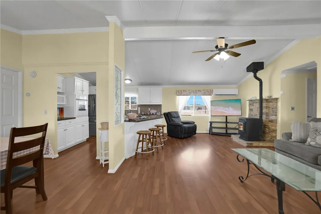 Welcome to this Beautiful perfectly maintained home 3 bed / 2 bath, a separate 2 car garage, a separate office with wall a/c, a large container for even more storage, lots of trees like 2 apple cocktails, apricot tree, fig trees, berry trees, olive tree, not to mention shade trees in a fenced huge lot and you still have room for lots more! The front entrance greets you in a large porch patio and at night it's perfect for serene mountain views !! The home has newly installed flooring in all the bedrooms, newly installed 2 mini splits cool/heat for energy savings, and a cute pellet stove for warm winters but also central cooling/heat system if you prefer it. Kitchen has granite counter tops, built in range with breakfast bar, and all appliances will stay. There is 220V in the back of the home good for future projects. It is Move-In Ready, ask about furniture , come take a look, you won't be disappointed !