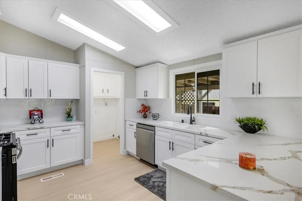 YES, THIS BEAUTIFUL LIKE NEW VIEW HOME WILL KNOCK YOUR SOCKS OFF. WHEN YOU ENTER THIS HOME YOU WILL SEE A WONDERFUL NEW "ISLAND" KITCHEN WITH UPGRADED SAMSUNG STAINLESS STEEL APPLIANCES INCLUDING A 5 BURNER GRILL TOP STOVE WITH AN AIR FRYER CAPABLE OVEN. ALONG WITH HIGH END QUARTZ COUNTERS WHICH ARE ALSO INCLUDED IN BOTH BATHROOMS, A HUGE LIVING AND DINING AREA SURROUNDED BY LARGE NEW INSULATED VIEW WINDOWS OVERLOOKING THE DECKS AND PARK. NOT TO MENTION THIS HOME HAS NEW LAMINATE FLOORING THROUGHOUT. YOU WILL ENJOY THE LARGE MASTER BEDROOM WITH DUAL HIS AND HER SINKS INCLUDING A DRESSING AREA. LARGE PRIVATE LOT WITH SEPARATE 2 CAR GARAGE. ROOM FOR PARKING UP TO 4 VEHICLES. DID I MENTION, THAT YOU HAVE ACCESS TO YOUR OWN PRIVATE PARK ACROSS THE STREET WITH HIKING TRAILS INCLUDING A NATURAL WATERFALL CASCADING INTO A POND SURROUNDED BY PICNIC TABLES, RV PARKING, TENNIS AND PICKLEBALL COURTS, SOCCER FIELD, A FISHING LAKE, AND 3 SWIMMING POOLS. THIS IS THE WORKING MAN'S COUNTRY CLUB. WOW! BROKER OWNER.