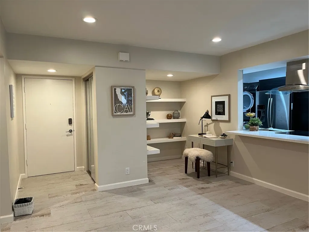This spacious one-bed, one and a half bath, single-level first floor unit is situated in the heart of West Hollywood. The open floor plan is filled with natural light form a wall of windows and tree line views. Enjoy recessed lighting throughout and new bedroom flooring. The Chef's kitchens features custom cabinetry, quartz countertops, designer tile backspashes, stainless steel appliances and stackable washer and dryer. The large bedroom includes a newly remodeled spa-like bathroom with soaking tub, seperate shower and walk-in closet plus additional closet with mirror door. The building is beautifully maintained with newly painted lobby and hallways and new carpeting. Secured one parking space. HOA amenities include parking, pool, and includes water, trash & AC. Near beautiful Kings Road Park, minutes from Gelson's, Melrose Farmers Market, and the best LA's restaurants, shops and night life-this condo is the perfect spot to enjoy the West Hollywood lifestyle.
