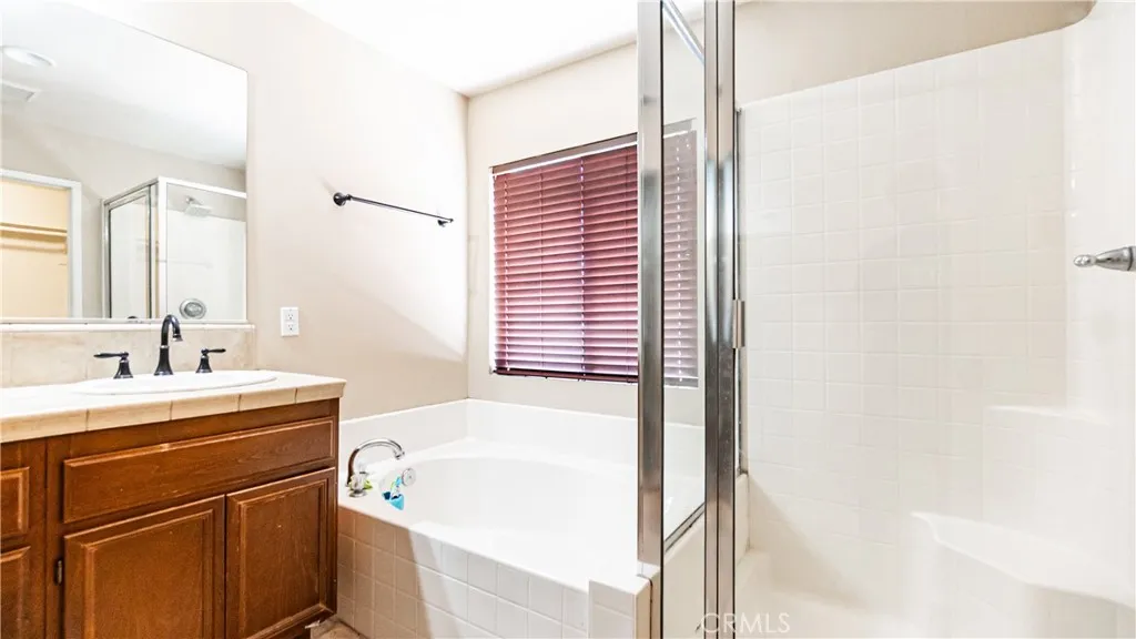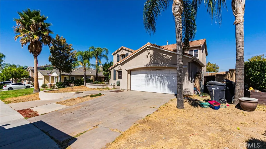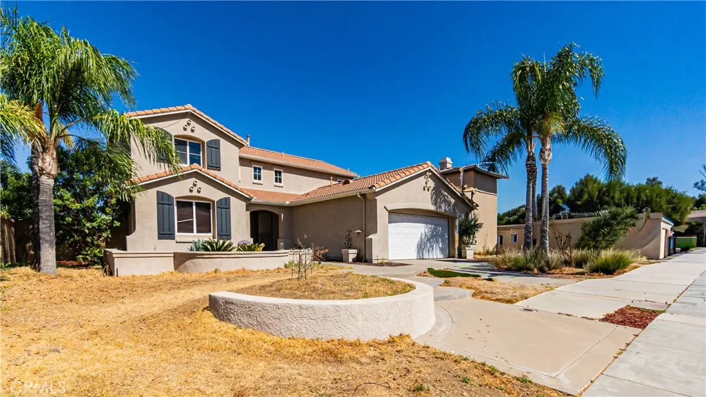Welcome to this spacious 4 bedroom, 3 bathroom home offering 2,525 sq ft of living space in a desirable Menifee neighborhood. Built in 2005, this two-story residence features a bright and open floor plan with a large living area, comfortable dining space, and a kitchen with plenty of cabinet and counter space. The home sits on a 7,400 sq ft lot with a private backyard, perfect for outdoor gatherings. Upstairs, the generous primary suite includes a walk-in closet and ensuite bath with dual sinks, soaking tub, and separate shower. Additional bedrooms are well-sized and versatile for family, guests, or office use. The property includes a convenient downstairs bedroom and full bath, laundry room, and attached garage. Located close to schools, parks, shopping, and freeway access, this home combines comfort and convenience in a growing community. With its size, layout, and location, this home presents excellent potential for customization and long-term enjoyment.