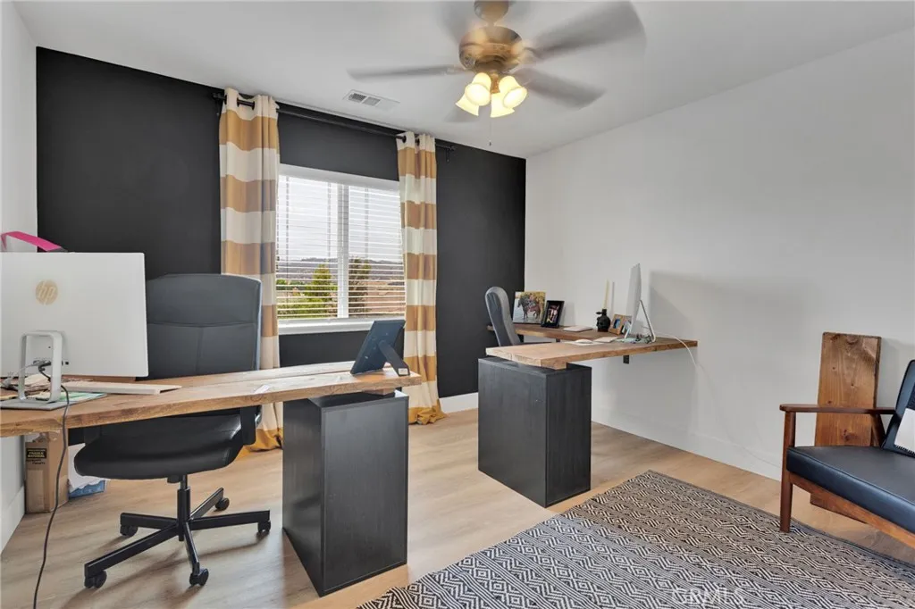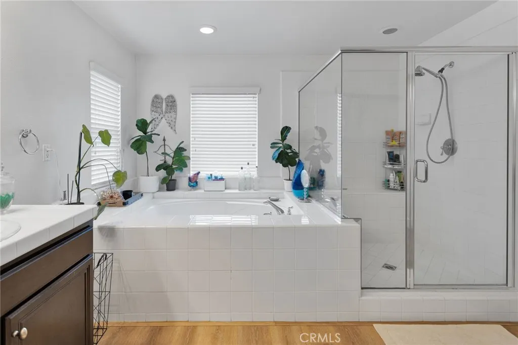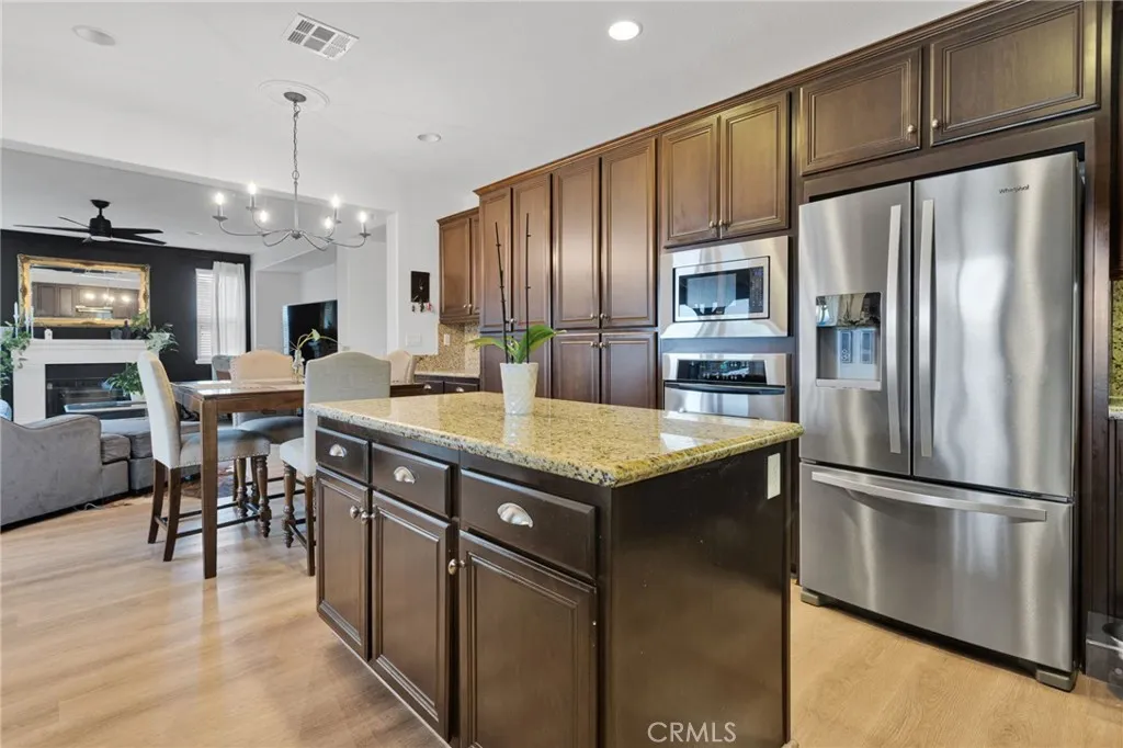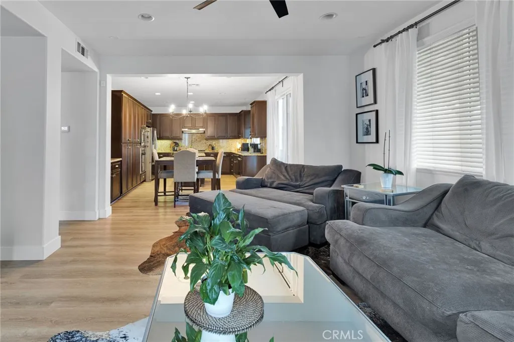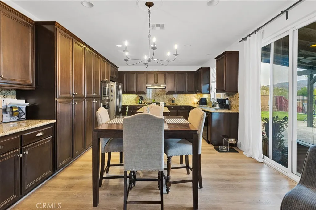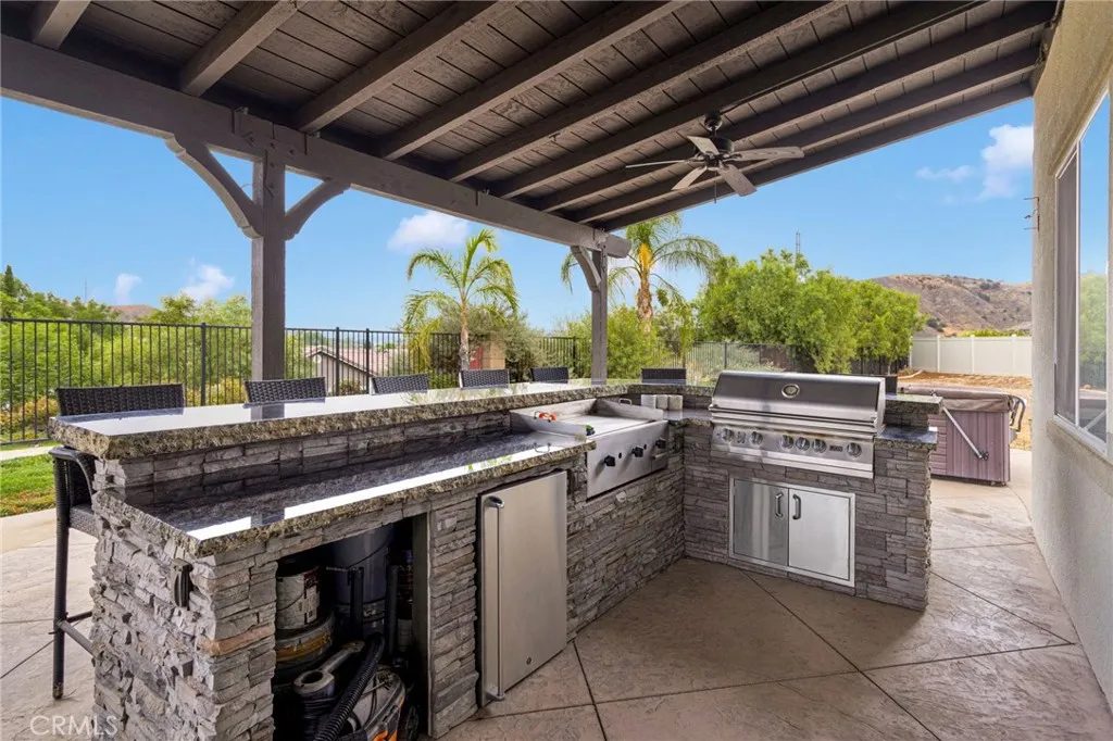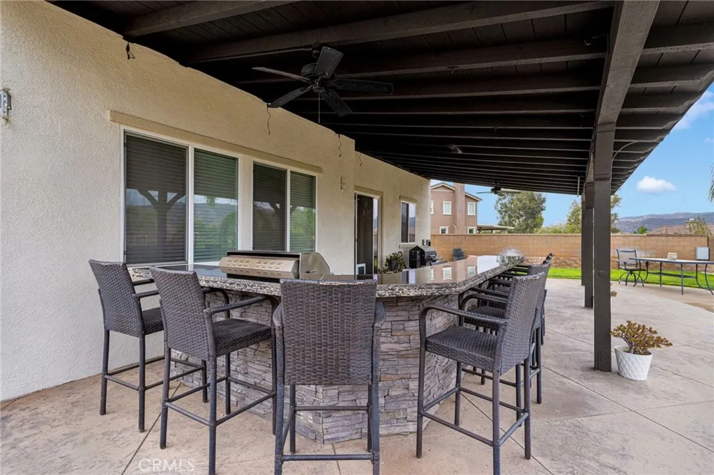 Welcome to this stunning 4-bedroom,(could easily make 5 bedrooms adding 1 downstairs) 2.5-bath home in the highly sought-after Fairway Canyon community. Perfectly situated at the end of a cul-de-sac on one of the largest lots in the neighborhood, this property offers privacy, space, and AMAZING views. Inside, youll find new floors, baseboards, for a modern, move-in ready feel. The spacious floor plan includes a formal dining room, living room, and family room. The kitchen is a true showstopper with a large island, granite counter tops, reverse osmosis water, and water softener throughout the house designed for both everyday living and entertaining. The primary suite is a luxurious retreat featuring a walk-in shower, oval soaking tub, dual vanities, and TWO walk-in closets. Step outside to your private backyard oasis with a gas fire pit, large patio cover, and a built-in barbecue with granite countertop, flat grill, and mini fridge. Perfect for gatherings or peaceful evenings at home. Additional upgrades include extra concrete for parking, RV parking, upgraded gates, generator switch plug, 50 AMP 3 prong plug in garage, new exterior paint and a brand-new fence. As part of Fairway Canyon, youll also enjoy access to community amenities including a pool, clubhouse, and more. Homes like this rarely come on the marketdont miss your chance to make it yours!