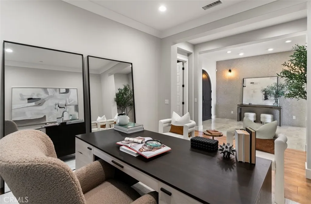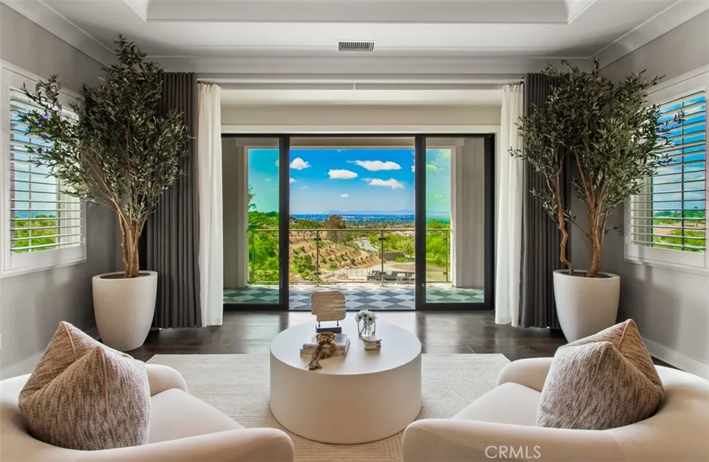 On one of the most sought-after streets in Orchard Hills Bella Vista enclave, 224 Clear Falls rises with distinction, offering a vantage few homes in the community can claim, rare views of the ocean, Catalina, and surrounding hills. Framed by the guard-gated serenity of Orchard Hills Estates and surrounded by lush avocado groves, this residence is a masterful balance of elegance, comfort, and enduring quality. Inside, a soaring two-story foyer and sweeping staircase create an unforgettable first impression, leading to a great room designed for both grand entertaining and everyday living. Glass doors open to an expansive covered outdoor lounge, where the extraordinary views become a natural extension of the home. The gourmet kitchen dazzles with its center island and wrap-around breakfast bar, bright dining nook, walk-in pantry, and the coveted secondary kitchen that makes hosting effortless. The primary suite is a sanctuary of its own, boasting a private view deck, dual walk-in closets, and a spa-inspired bath with Roman tub and luxe shower. Complementing the primary suite are four secondary bedrooms, each with ensuite baths, including one conveniently located on the main level for guests or multi-generational living. A spacious bonus room connects to a covered deck, while a refined home office and welcoming drop zone add versatility to the thoughtful floor plan. Meticulously maintained and enhanced with a rare four-car garage, this home is a jewel within one of Irvines most prestigious guard-gated communities. Just minutes from Irvine Spectrum, Tustin Marketplace, and majo