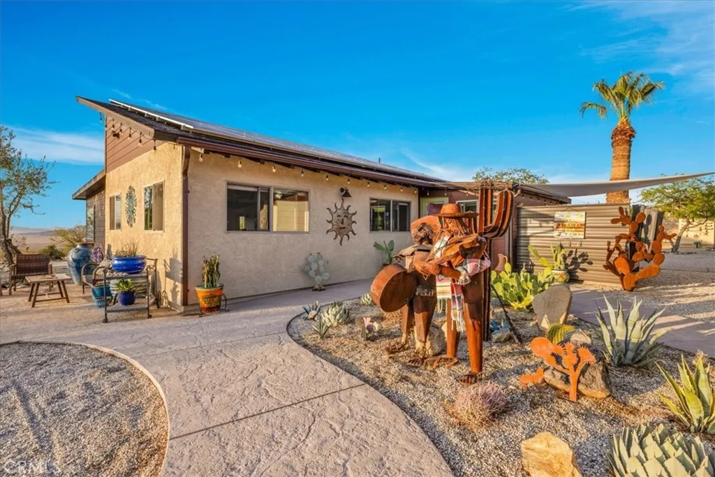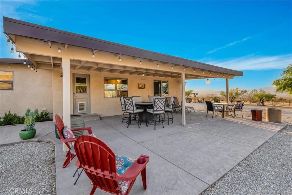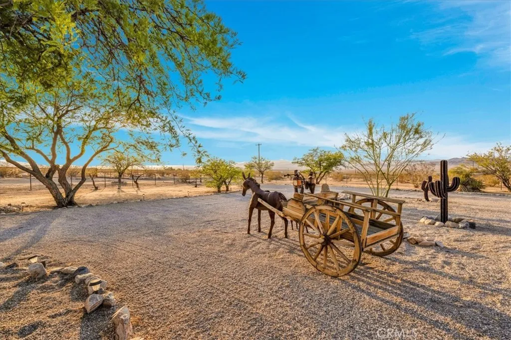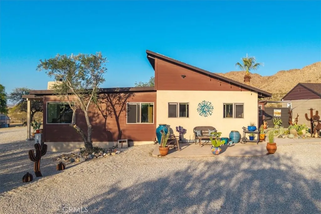 Luxury Ranch Estate in Johnson Valley, California Your Desert Oasis Awaits! Discover this stunning ranch estate on 10 acres in Johnson Valley. This property features a fully paid solar system, ensuring no electricity bills, and a high-production water well for sustainable living. Nestled against thousands of acres of government land, enjoy ultimate privacy and tranquility amidst serene desert landscapes and majestic mountains. As you drive up, the scenic desert, adorned with rows of Joshua trees, welcomes you home. Each day offers breathtaking views that shift with the light, creating a calming and invigorating atmosphere. The beautifully landscaped yard includes shade trees, cacti, and tasteful desert art, setting the perfect tone for your retreat. Step inside to an open floor plan featuring vaulted ceilings, custom light fixtures, and a rustic fireplace. Natural light floods through well-placed windows, enhancing the airy feel and showcasing the impressive views. The renovated kitchen opens to the living area, perfect for entertaining. Equipped with quartz countertops, a stylish backsplash, high-end cabinets, and stainless steel appliances, its a culinary enthusiast's dream! The spacious dining area accommodates large gatherings, while the bonus room is ideal for reading or a home office. The remodeled guest bathroom features a stone vanity and tiled walk-in shower. The primary suite is a true sanctuary, with ample closet space and a private bathroom featuring a dual vanity and soaking bathtub. You don't just view this property, you experience it! Back outside you're sur