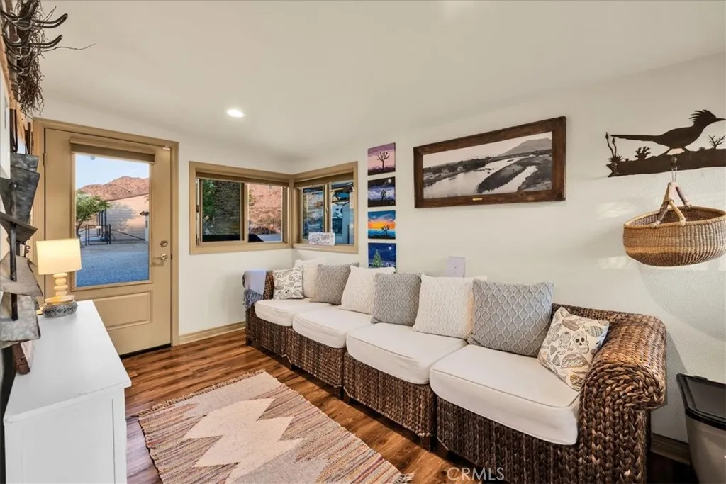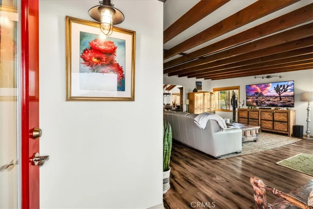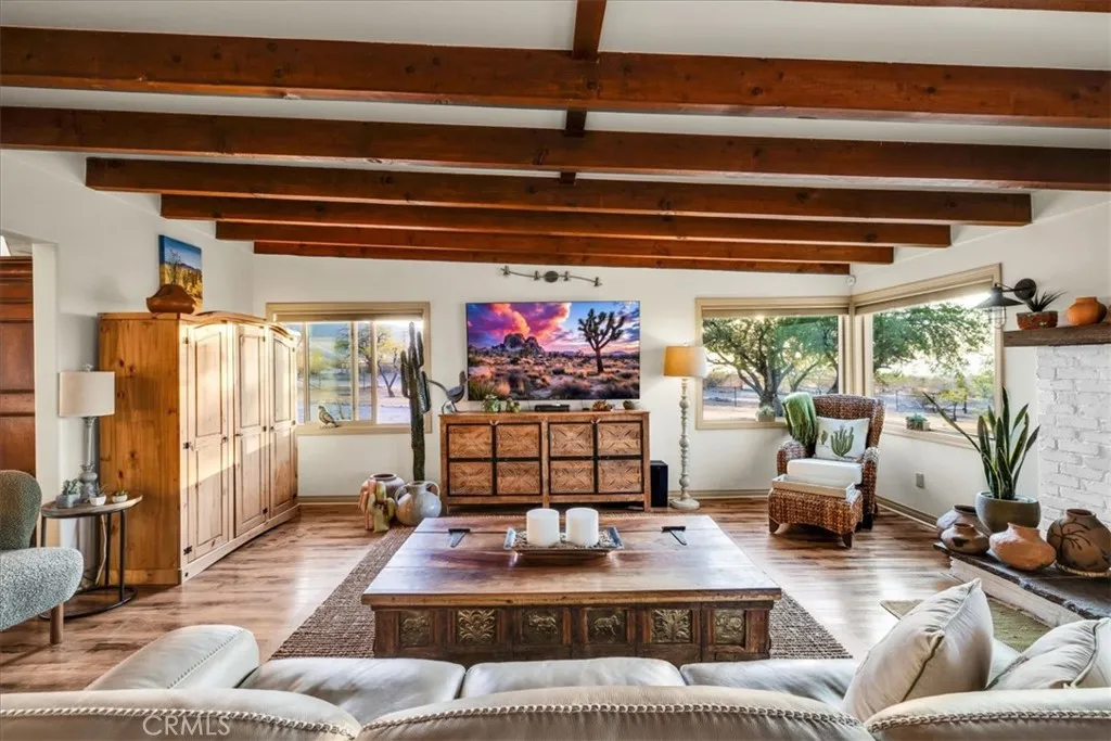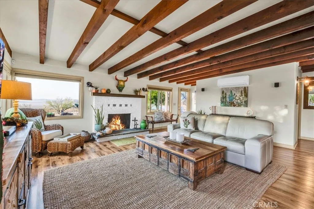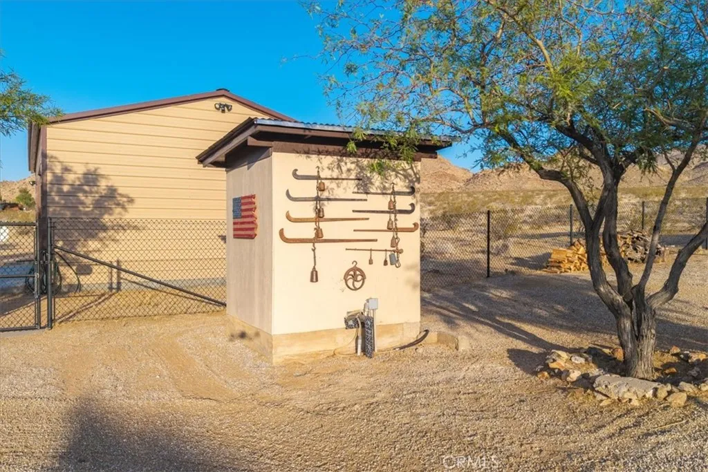 Luxury Ranch Estate in Johnson Valley, California Your Desert Oasis Awaits! Discover this stunning ranch estate on 10 acres in Johnson Valley. This property features a fully paid solar system, ensuring no electricity bills, and a high-production water well for sustainable living. Nestled against thousands of acres of government land, enjoy ultimate privacy and tranquility amidst serene desert landscapes and majestic mountains. As you drive up, the scenic desert, adorned with rows of Joshua trees, welcomes you home. Each day offers breathtaking views that shift with the light, creating a calming and invigorating atmosphere. The beautifully landscaped yard includes shade trees, cacti, and tasteful desert art, setting the perfect tone for your retreat. Step inside to an open floor plan featuring vaulted ceilings, custom light fixtures, and a rustic fireplace. Natural light floods through well-placed windows, enhancing the airy feel and showcasing the impressive views. The renovated kitchen opens to the living area, perfect for entertaining. Equipped with quartz countertops, a stylish backsplash, high-end cabinets, and stainless steel appliances, its a culinary enthusiast's dream! The spacious dining area accommodates large gatherings, while the bonus room is ideal for reading or a home office. The remodeled guest bathroom features a stone vanity and tiled walk-in shower. The primary suite is a true sanctuary, with ample closet space and a private bathroom featuring a dual vanity and soaking bathtub. You don't just view this property, you experience it! Back outside you're sur