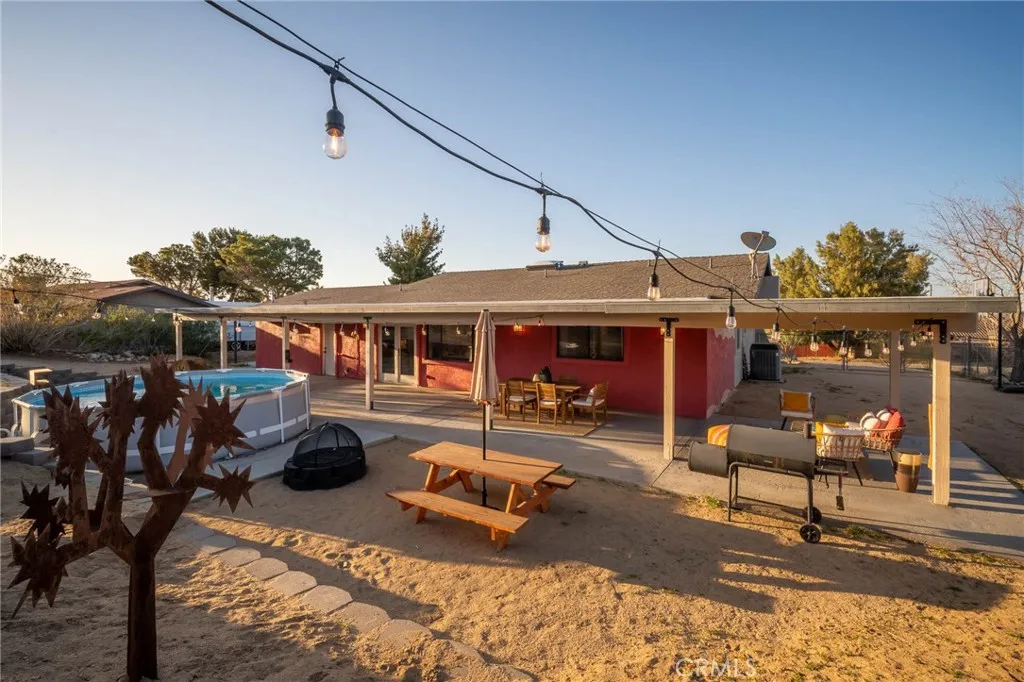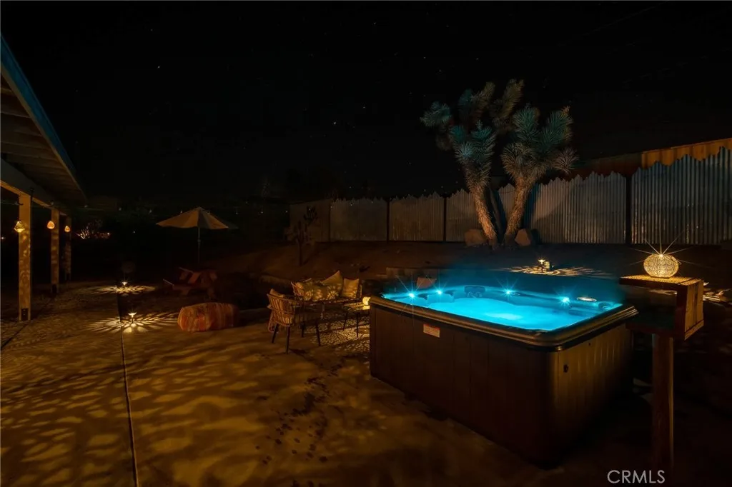 Rediscover serene desert living in this elegant, fully remodeled, Tuscan home nestled within Joshua Tree's renowned "upper friendly hills" neighborhood. Located at 60467 Natoma Trail, surrounded by artists and trendy boutique restaurants, this bright, custom home offers an idyllic retreat away from city life. Just 5 minutes from the Joshua Tree National Park entry, this home features tile floors throughout that add sophistication and charm. The spacious outdoor area includes a fenced privacy yard and unparalleled views of the mountains and exceptional Joshua Trees. There are also two backyard storage containers, one creatively turned into a game room, and the other can be used as extra storage or even renovated. Enjoy awe-inspiring sunrises, breathtaking sunsets, and stargazing from the comfort of your backyard. The hot tub featured in the backyard is not included in the sale but can be purchased separately. Option for a roof viewing deck, staircase just needs to be re-attached to the existing deck. Feel the charm of this exclusive desert community and fall in love with the serene lifestyle it offers!
