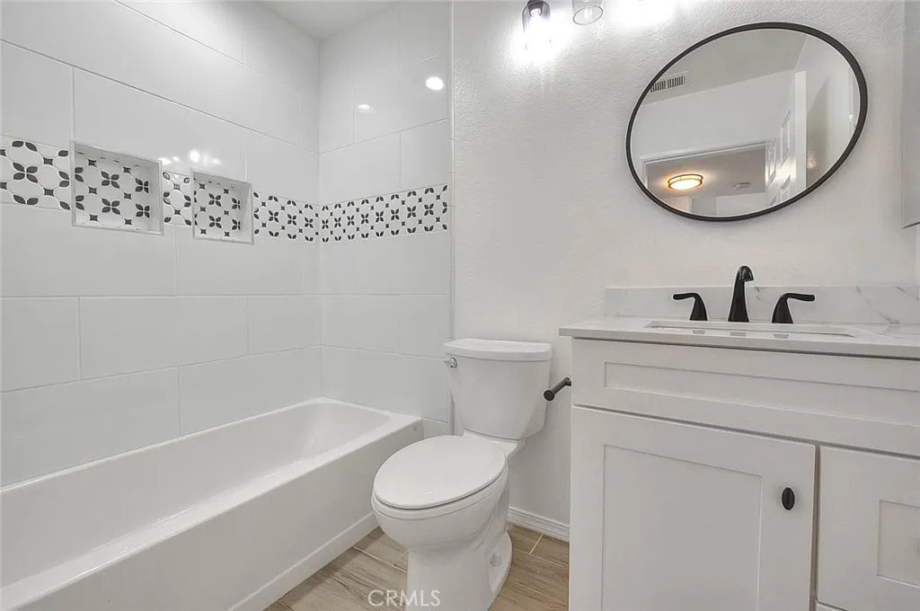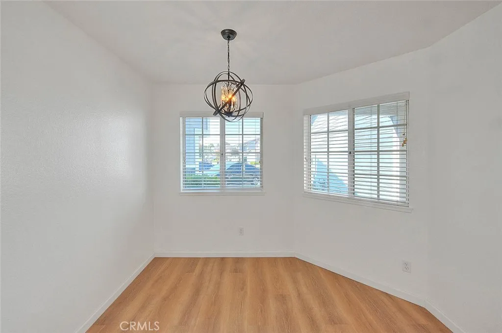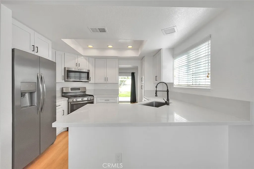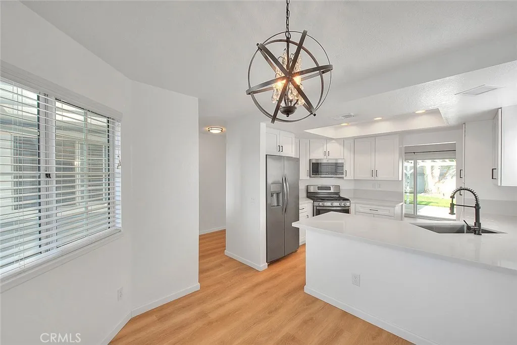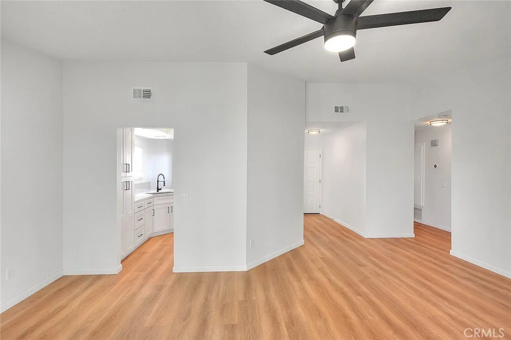 Very desirable Hampshire Village community with low $193 association dues that includes fire insurance, community pool/spa, and front yard maintenance. This one-story floor plan is one of only a handful. Vinyl wood look laminate floors throughout. Brand new kitchen with granite counter tops, tiled back splash, stainless steel appliances (gas range and microwave), shaker cabinets, and recessed lights. Enjoy the breakfast nook for casual dining. Vaulted ceilings in the living room, warm and toasty fireplace burns gas logs or wood. Two new bathrooms with tiled showers, glass shower doors, shaker cabinets, and granite countertops. Indoor laundry room and an attached two car garage with covered walkway to the front door. The ac has been replaced, new front screen door. Two newer dual pane sliding doors exit to the double sized (perhaps the largest lot in the community) private back yard. One slider is off of the master suite the other off of the living room. Both sliders enter the covered patio with concrete deck. Concrete tile roof. This home is in a planned unit development and shares one wall with an adjoining home. Extra parking with the private concrete driveway for two cars. Community pool and spa, sport court, barbecue area, meandering walking path. Excellent schools and nearby shopping. Chino is a multiple award winner of Top 100 Cities for Young Families.
