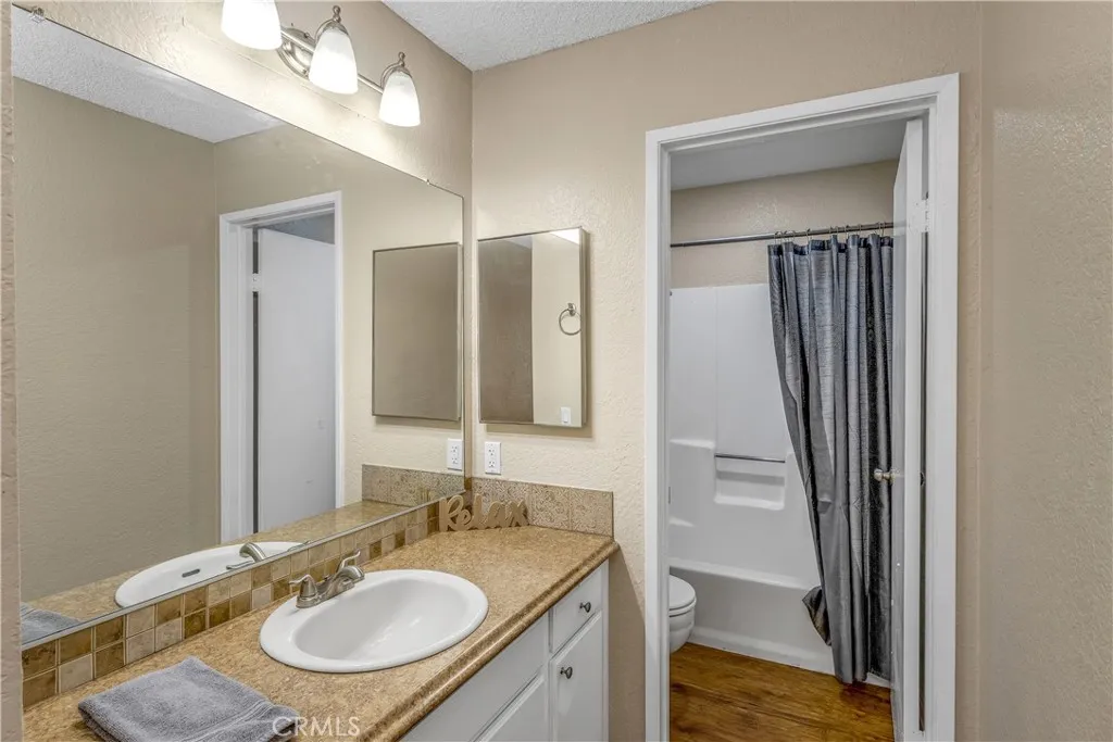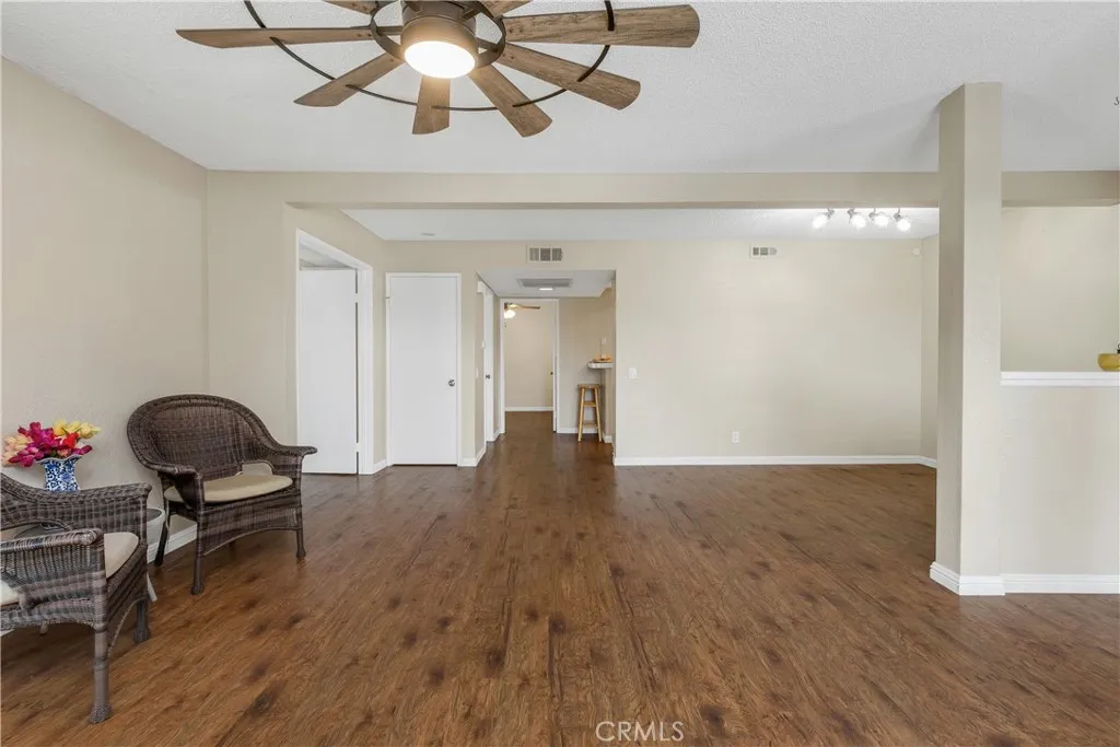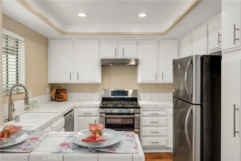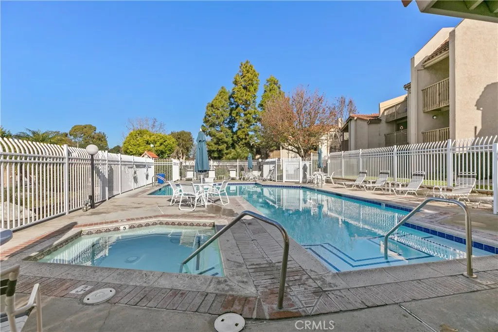 Nestled within a private gated community, this beautifully updated second-floor unit offers 2 spacious bedrooms and 2 full bathrooms. Step inside to discover a bright and airy living space where natural light pours into the living room, complete with a cozy gas fireplace and a separate dining areaperfect for entertaining. Sliding glass doors open to a private balcony. The kitchen is thoughtfully designed with crisp white cabinetry, tile countertops, recessed lighting, vinyl flooring, and a convenient breakfast bar. The first primary suite features dual vanity sinks, a luxurious soaking tub, a walk-in closet, and direct access to the balcony through a second patio door. The second primary bedroom is generously sized and includes its own en-suite bathroom for added privacy. Additional highlights include vinyl wood flooring throughout, an in-unit laundry room with extra storage, a one-car garage, and an additional parking space. Community has tranquil streams and walking paths, two pools, two spas, a clubhouse, and a BBQ area. All this in a prime locationjust minutes from Bolsa Chica State Beach, shopping, and dining.
