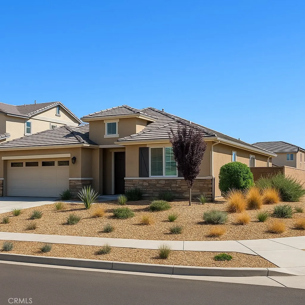 Over $60,000 in Upgrades! ** NO HOA ** LOW TAXES ** Welcome to one of Victorvilles most desirable new home communities. This single-story residence offers 3 bedrooms (4-bedroom floor plan), 3 full baths, and a 2-car garage. Located in the scenic high desert, youll enjoy a peaceful neighborhood feel with convenient access to I-15, US-395, shopping, dining, and recreation at Big Bear Lake, Silver Lakes, and Snow Summit. Interior Features; Inside, youll find, raised panel interior doors, rocker switches, designer lighting, and overhead bedroom lights. The open floor plan includes a spacious great room, an interior laundry, and a sliding glass door to the backyard. Gourmet Kitchen; The upgraded kitchen showcases Whirlpool stainless steel appliances, slab granite countertops with 6 backsplash, crown-molded cabinetry, pantry, and Kohler pull-down spray faucet at the double-bowl sink. Primary Suite; The primary suite offers a large walk-in closet and spa-like bath with dual E-Stone vanities, a separate glass-enclosed shower, private water closet, and designer lighting. Additional Highlights; + Block wall fencing + Low-maintenance front yard landscaping + Tankless water heater + Dual-pane Low-E windows + Whole-house fan & energy-efficient lighting + Solar system for low ( to no) utility costs This home combines comfort, upgrades, and energy efficiencyan ideal fit for todays lifestyle. (The 4th Bedroom was a builder option; the room is there, but there is no door or closet.) Some images may have been digitally enhanced, altered, or virtually staged to better showcase the propertys p