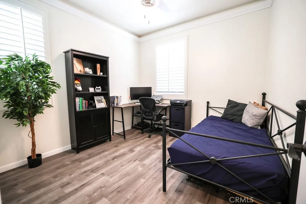 Welcome to Your Dream Home in the Desirable Summerly Community of Lake Elsinore! Step into modern farmhouse elegance with this beautifully upgraded 4-bedroom, 3-bathroom home located in the sought-after Summerly community. Designed with comfort and style in mind, this home offers the perfect blend of functionality and charmideal for families and entertainers alike. As you arrive, you're greeted by fresh landscaping, vibrant roses, and a cozy front porchperfect for relaxing with your morning coffee. Inside, luxury vinyl plank flooring flows seamlessly throughout the home, complemented by classic plantation shutters for a timeless aesthetic. The main floor features a private bedroom and a convenient bath, perfect for guests or multigenerational living. Continue down the hall to the open-concept living space where the family room, dining area, and chefs kitchen come together in perfect harmony. The spacious kitchen boasts a nice island for meal prep and gathering, stainless steel appliances, and a generous walk-in pantry for all your storage needs. Sliding glass doors open to a beautifully landscaped backyardan ideal setting for outdoor dining and entertaining. Upstairs, retreat to your spacious primary suite complete with a custom sliding barn door that opens to the ensuite bathroom. A Jack-and-Jill bath connects the additional two bedrooms, and the upstairs laundry room adds convenience to daily life. The Summerly community offers resort-style amenities including sparkling pools, relaxing jacuzzis, playgrounds, sports courts, a community fireplace, outdoor cooking areas, an