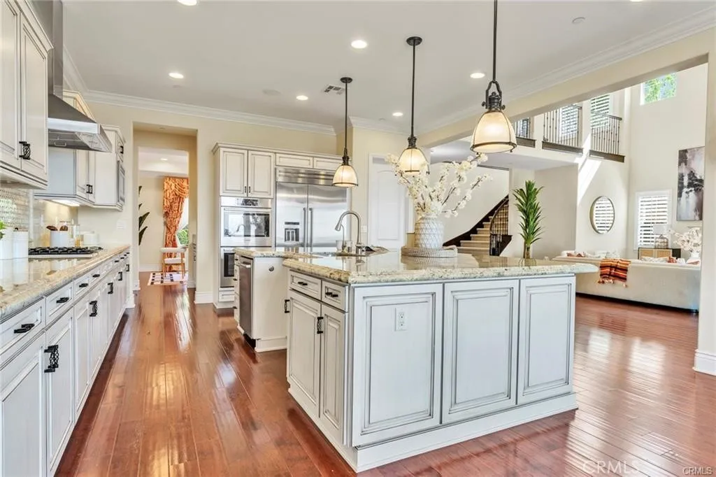 Stunning View Home in South Hills Estates On the Market for the First Time!! This beautifully appointed, south-facing luxurious custom home is nestled on one of the most breathtaking city-view lots in prestigious South Hills Estates. Enjoy spectacular panoramic views of the San Gabriel Valley mountains and sparkling city lights from nearly most rooms. Extensively upgraded inside and out, this magnificent estate offers ultimate privacy with its own private automatic gate. Once inside, a landscape welcomes you to an expansive front porch featuring a charming fountain. Step into a entryway that opens to a soaring high-ceiling foyer and an elegant formal dining room. The spacious family room, complete with a cozy fireplace, A high stacking glass door connects the living space to a California room and a picture-perfect rear garden with 180-degree city views complete with a mini golf area! Theres also a private deck off the Master Suite to fully enjoy the stunning vistas. The main-level Master Suite features a private retreat, dual sinks, and a convenient stacked washer/dryer. The home boasts 12-foot ceilings on the first floor and 9-foot ceilings upstairs. The gourmet kitchen features a large center island, and the countertops are custom-made with upgraded thickness, offering a more solid and textured feel compared to standard countertops, oversized walk-in pantry and complete with a custom full backsplash. Top-of-the-line Bosch stainless steel appliances, double oven, 5-burner cooktop, custom vent hood, and an 80 built-in Thermador refrigerator elevate this chefs dream kitche