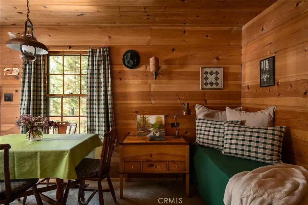Welcome to 629 Lodge Lane, Twin Peaks, CA On the market for the very first time, this enchanting 1941 cabin offers a rare opportunity to own a piece of local history. Nestled at the end of a quiet, no-through street on two forested parcels totaling 0.75 acres, the home is surrounded by towering sequoias, old-growth cedars, pines, graceful dogwoods, and a natural understory of native raspberry and strawberry plants. A seasonal creek runs just across the street, adding to the storybook setting. Inside, the cabin radiates warmth and authenticity, with beautifully preserved knotty pine walls, original wood-framed windows in pristine condition, and a wood-burning stove that anchors the living space. Thoughtful custom details, lovingly added over the decades, give each room character and charm. Light filters gently through the natural shade canopy, creating a peaceful, timeless atmosphere that transports you to another era. The floor plan includes one bedroom, a cozy sleeping loft, and one full bath, making it an ideal retreat. While steeped in history, the home has been carefully updated with modern comforts, including a durable metal roof, central heating and cooling, tankless water heater, and upgraded electrical and plumbing systems. Outside, privacy and tranquility abound. The property feels worlds away yet is conveniently located just down the road from the local farmers market and other Twin Peaks amenities. Whether as a full-time residence or a cherished mountain getaway, this home is a rare gemimpeccably maintained, rich in character, and truly one-of-a-kind.