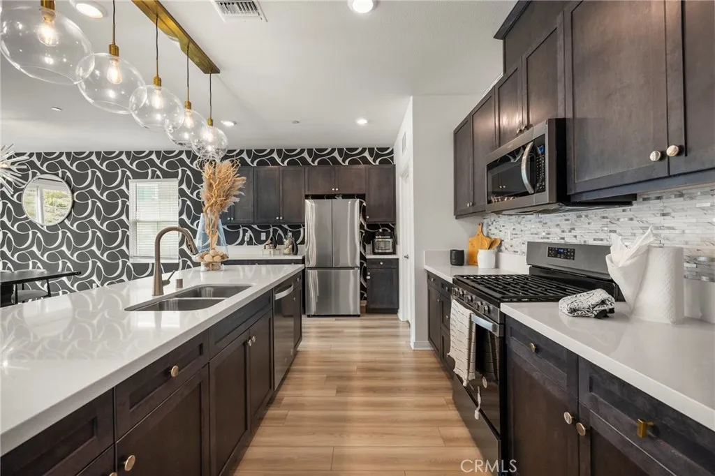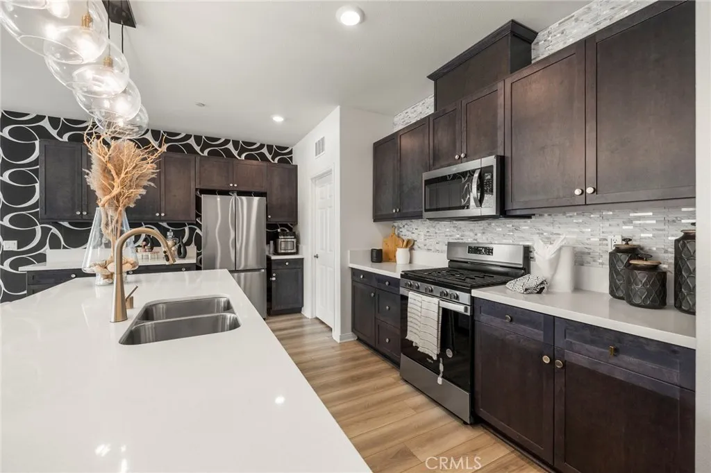 In the premier new neighborhood of Crimson Hills this single level stunner shows like an absolute model and features a 1/4-acre usable lot! Thoughtfully enhanced with designer finishes by a professional designer, this home combines style and functionality, offering a move-in ready space with custom touches throughout. Crimson Hills puts you right where convenience meets adventure. Walk the kids to Earl Warren Elementary, spend weekends cheering at Storm Stadium, or enjoy family outings at nearby parks. Shopping runs are a breeze with Costco, Lowes, and Lake Elsinore Marketplace just minutes away. Outdoor lovers will appreciate easy access to hiking trails, Rosetta Canyon Sports Park, and Lake Elsinoreperfect for boating, fishing, and fun on the water. Plus, with quick connections to I-15 and Hwy. 74, commuting and weekend getaways are simple. A custom doorway from the primary closet provides direct access to a guest rooman ideal setup for a nursery, home office, or private retreat! The spacious -acre backyard is a blank canvas, ready for you to create your dream outdoor retreatwhether thats a pool, garden, or entertainers paradise and one of the largest in the community!