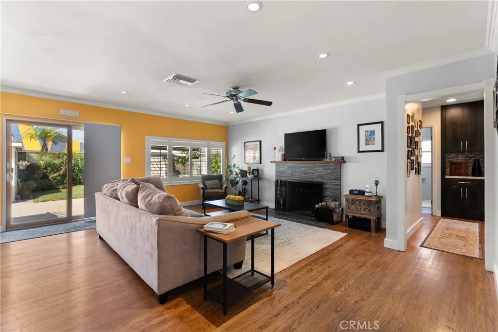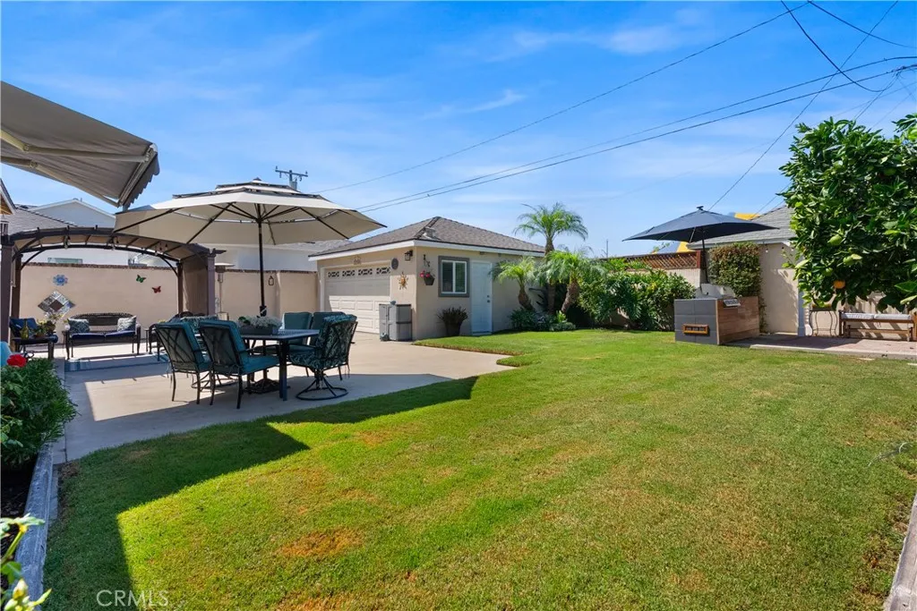 Welcome to this beautiful home with an open concept that flows from the well-appointed kitchen, to dining room, to living room, allowing for an abundance of light and a cozy fireplace with access to the patio. There are many designer details throughout this beautifully upgraded home. Located in a friendly neighborhood makes this a special place to call home. Close to award winning schools, shopping, and easy access to major freeways. The two-car garage is detached at the end of a long driveway and has extra storage as well as the washer and dryer. The backyard is well maintained with a built-in Bar-B-Q, large awing, fruit trees and beautifully manicured plants.