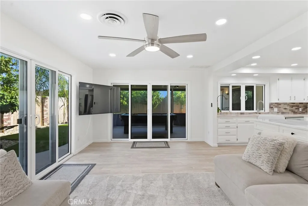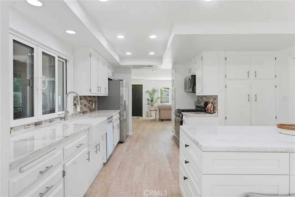 Luxury Family Haven in the Westwood Estates in Southwest Bakersfield.Discover your dream home. This one-story estate includes unmatched curb appeal, boasting a freshly updated exterior with a stunning design with many features including a newer roof, synthetic grass, RV access, drive through garage, sparkling pool, above ground jacuzzi hot tub, beautiful pergola, stunning enclosed patio area all on a 10,454 sf lot. The interior exceeds your wants with updates everywhere. Enjoy 2 living areas, 3 bedrooms, 2.5 bathrooms, window shutters, stone fireplace, wood look tile flooring, led recessed lighting, updated fixtures and so much more. The gourmet chef's kitchen includes a farm style sink, subway tile backsplash, white quartz counters, newer stainless steel appliances, newer white cabinetry and much more.