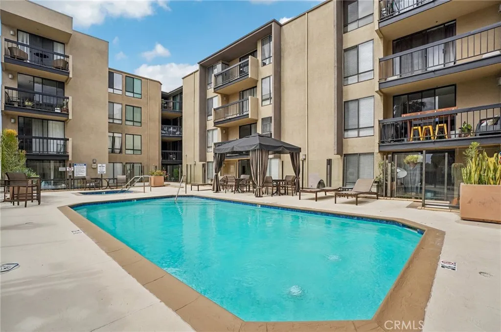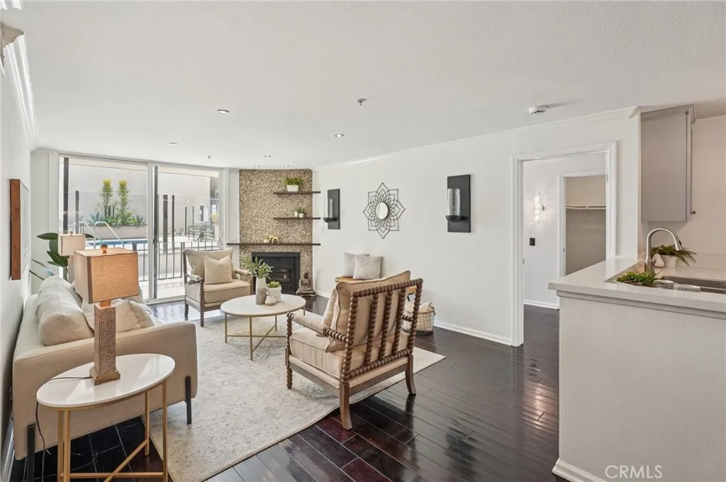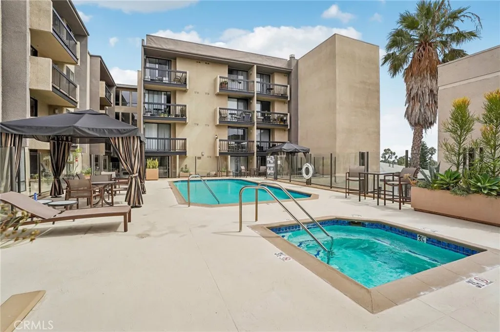 Beautifully renovated 2-bed, 2-bath condo with dual en suites, quietly tucked between Hollywood Blvd. and Sunset Blvd. Just minutes from the Sunset Strip, TCL Chinese Theatre, Hollywood Bowl, Magic Castle, and all the trendy dining, coffee shops, shopping, and nightlife Hollywood has to offer. Outdoor enthusiasts will also love being close to Runyon Canyon for scenic hikes. This unit enjoys one of the best locations in the communityoverlooking the pool for abundant natural light and serene views, rather than facing another building. The open-concept layout features a stylish granite kitchen with new stainless-steel appliances, newer flooring, a cozy fireplace, and a private patio. Additional comforts include central AC and heating, in-unit washer/dryer hookups, and two tandem parking spaces conveniently located next to an EV charging station, plus guest parking. The gated community offers premium amenities including a heated pool, spa, fitness center, and outdoor lounge. Modern comfort meets an unbeatable Hollywood location.