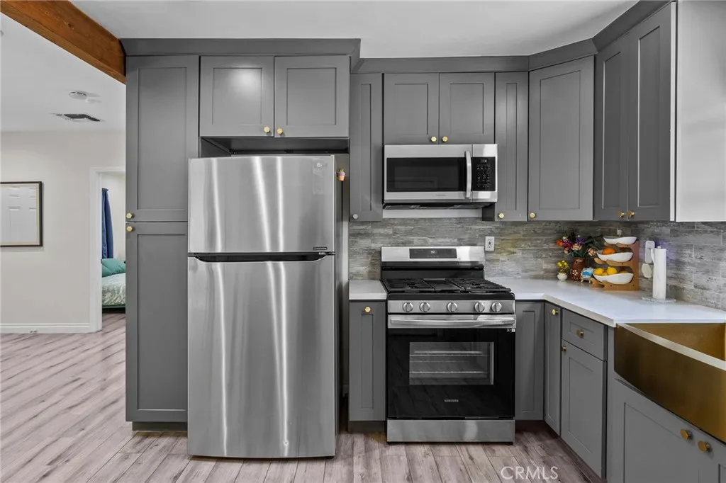 Welcome to this Beautiful Remodel Home!! 156 W Wabash St. San Bernardino Ca 92405. Many Upgrades have Been Done to This Property!! 2 bedroom 1 bath. Perfect Size of Front Yard and Back Yard with air conditioning (AC) and heating system. Elementary school is 5 minutes away. 1 car Garage, 3 cars can fit on the Driveway. The Property will include Microwave, Stove and Dish washer. The Front Garden Gives You a Tranquil Peaceful Vibes Perfect for Relaxing also it has a Beautiful Back Yard for Barbecues and Gatherings. The kitchen with Porcelain countertops is a Harmonious Blend of style and Practically Creating a Beautiful function space that is both Visually Appealing and Highly durable and we cannot forget The Electric Fence that sourounds the property it gives that Private Boost that every Family appreciates.
