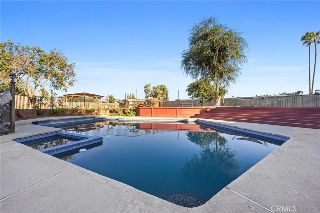 Welcome to Country Living! This unique 4-bedroom, 3-bath home sits on nearly a full acre of usable land, offering the perfect blend of comfort and potential. Inside, youll find brand-new flooring throughout, a modern kitchen, and a cozy dining area. With some TLC, this property can truly shine! Step outside to discover small stables, a detached office/studio, and an oversized underground pool ideal for entertaining or relaxing on sunny days. The property also features grape vines, an orange tree, a spacious deep pit, and ample room to add an ADU, making it a wonderful fit for multigenerational living, equestrian enthusiasts, hobby farmers, or anyone who loves outdoor space.