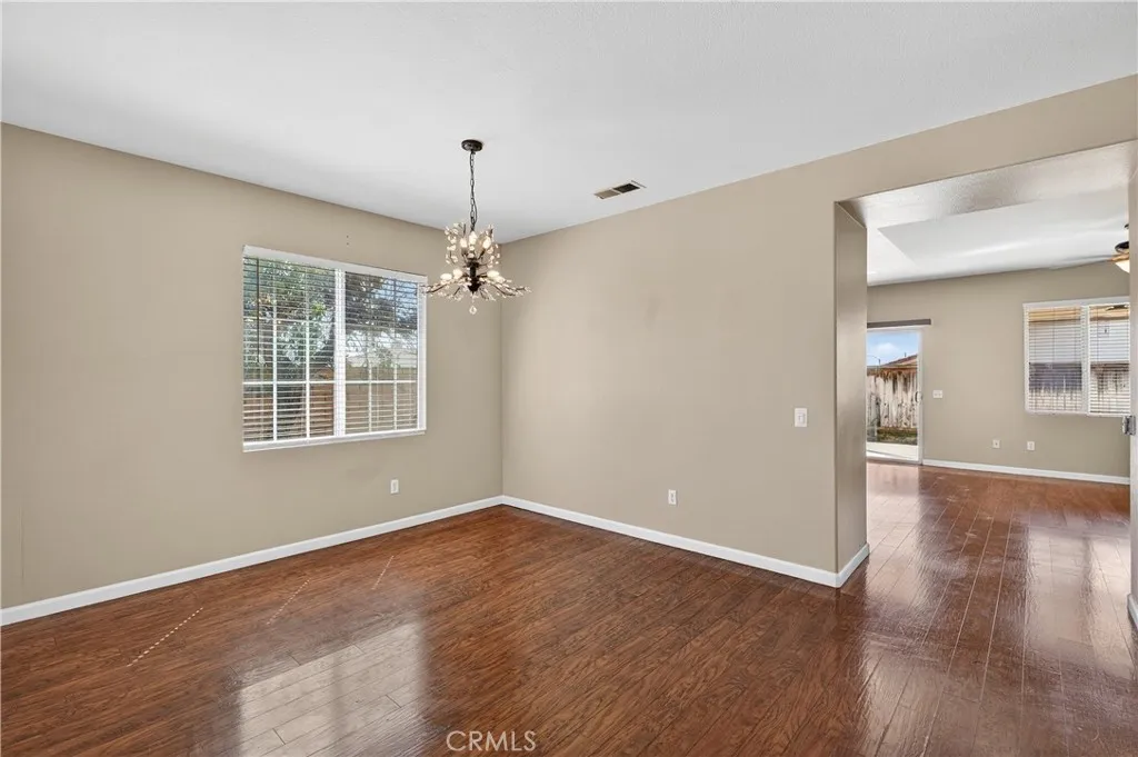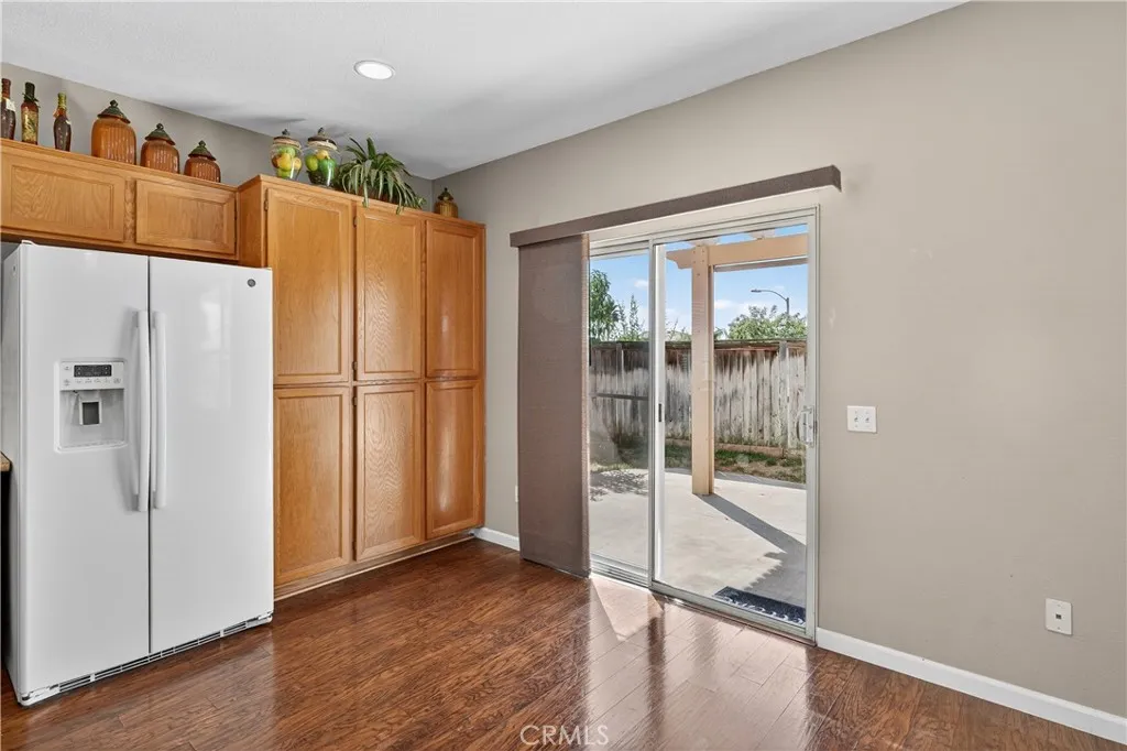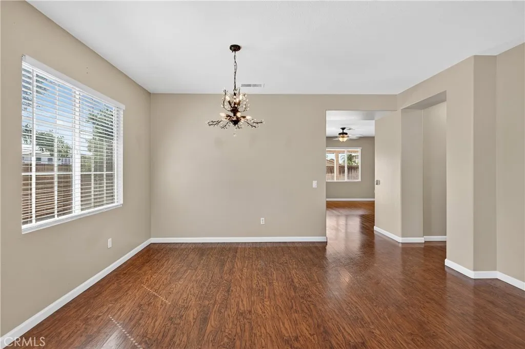 Welcome to your dream home in the desirable 3 Rings Ranch community with no HOA or high taxes! This charming single-story residence offers 4 bedrooms and 2 full bathrooms, combining comfort, style, and ideal indoor-outdoor living. Step inside to discover a bright, open floor plan with abundant natural light flowing through spacious living areas. The well-appointed kitchen features ample cabinetry, modern appliances, and thoughtful layout perfect for family meals or entertaining friends. The adjoining dining and living spaces offer seamless flow, with easy access to the backyard. The generously sized primary suite provides a tranquil retreat, complete with a private bathroom offering a separate tub and shower and a spacious walk-in closet.. Three additional bedrooms are versatile and bright, ideal for family, guests, or a home office. The second bathroom is conveniently located to serve both the communal areas and extra bedrooms. Outside, the backyard offers a peaceful setting for outdoor entertaining, gardening, or simply relaxing beneath the blue Southern California sky. The single-story design with upgraded Wood style vinyl flooring ensures easy, barrier-free movement throughout. Located in the well-established 3 Rings Ranch neighborhood, youll enjoy a sense of community along with proximity to local amenities: schools, parks, shopping, and convenient freeway access about 1 mile to both the 60 & 10. This home is perfect for families or anyone seeking comfort, convenience, and a move-in ready lifestyle in Beaumont. Located on a spacious corner lot, the large side-yard off