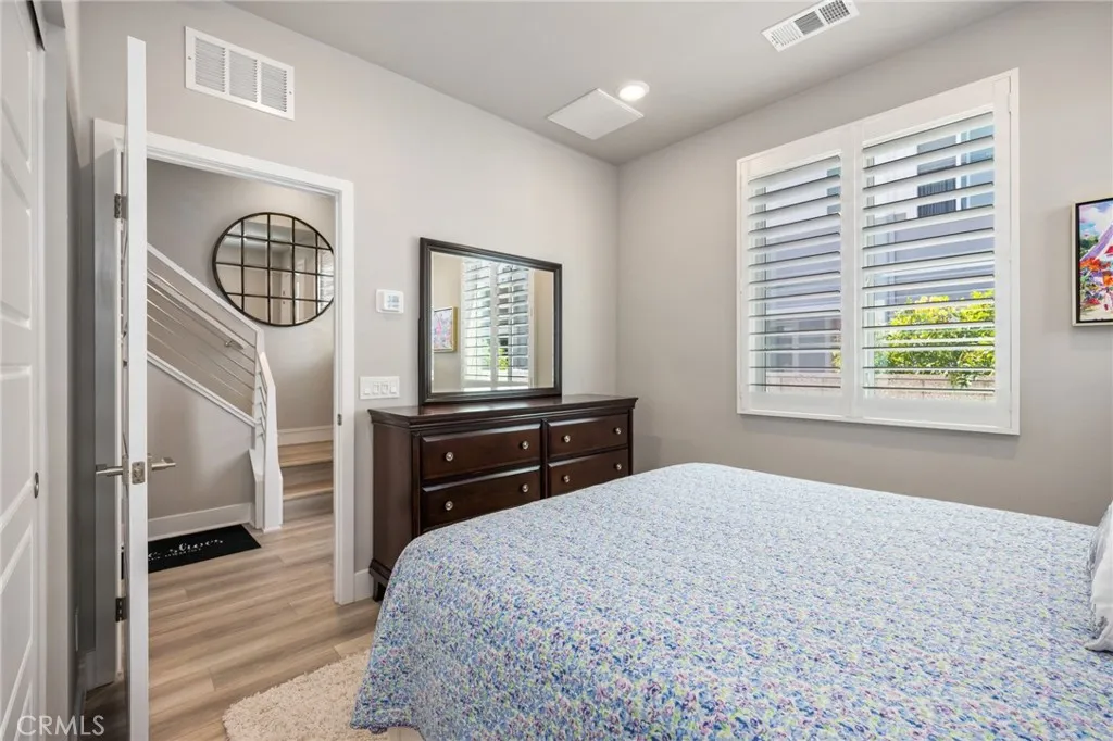 Welcome to this modern three-story residence in the heart of San Pedro, offering style, functionality, and comfort at every turn. As you enter this spacious end unit, youre greeted by a private front patio that sets the tone for relaxed living. The entry-level features a spacious bedroom with its own full bathroom, perfect for guests or a private office. On the second floor, youll find an open-concept living, dining, and kitchen area flooded with natural light. Light-colored floors, recessed lighting, and a seamless layout create a warm, inviting atmosphere. The gourmet kitchen is a chefs dream, showcasing white cabinetry, sleek black quartz countertops, stainless steel appliances, and a large eat-in island ideal for gatherings. Enjoy the sunny weather from the balcony to enjoy fresh air and neighborhood views. The top floor is home to the expansive primary suite, complete with an en suite bathroom featuring dual sinks and a large glass-enclosed shower. Also upstairs are two additional bedrooms, a full guest bathroom, and a convenient laundry area. Additional highlights include an attached two-car garage for easy parking and storage, paid of solar panels, upgraded plantation shutters and central A/C and Heat. Community features a pool and outdoor spaces. This stunning home combines contemporary design with everyday functionalityperfect for anyone seeking the best of coastal living in San Pedro!
